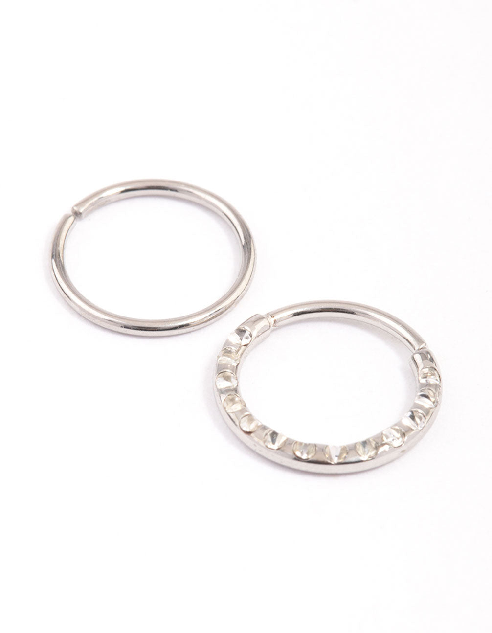 - Fill your jewellery box with piercing staples, like this Surgical Steel Cubic Zirconia Textured Nose Ring 2-Pack.