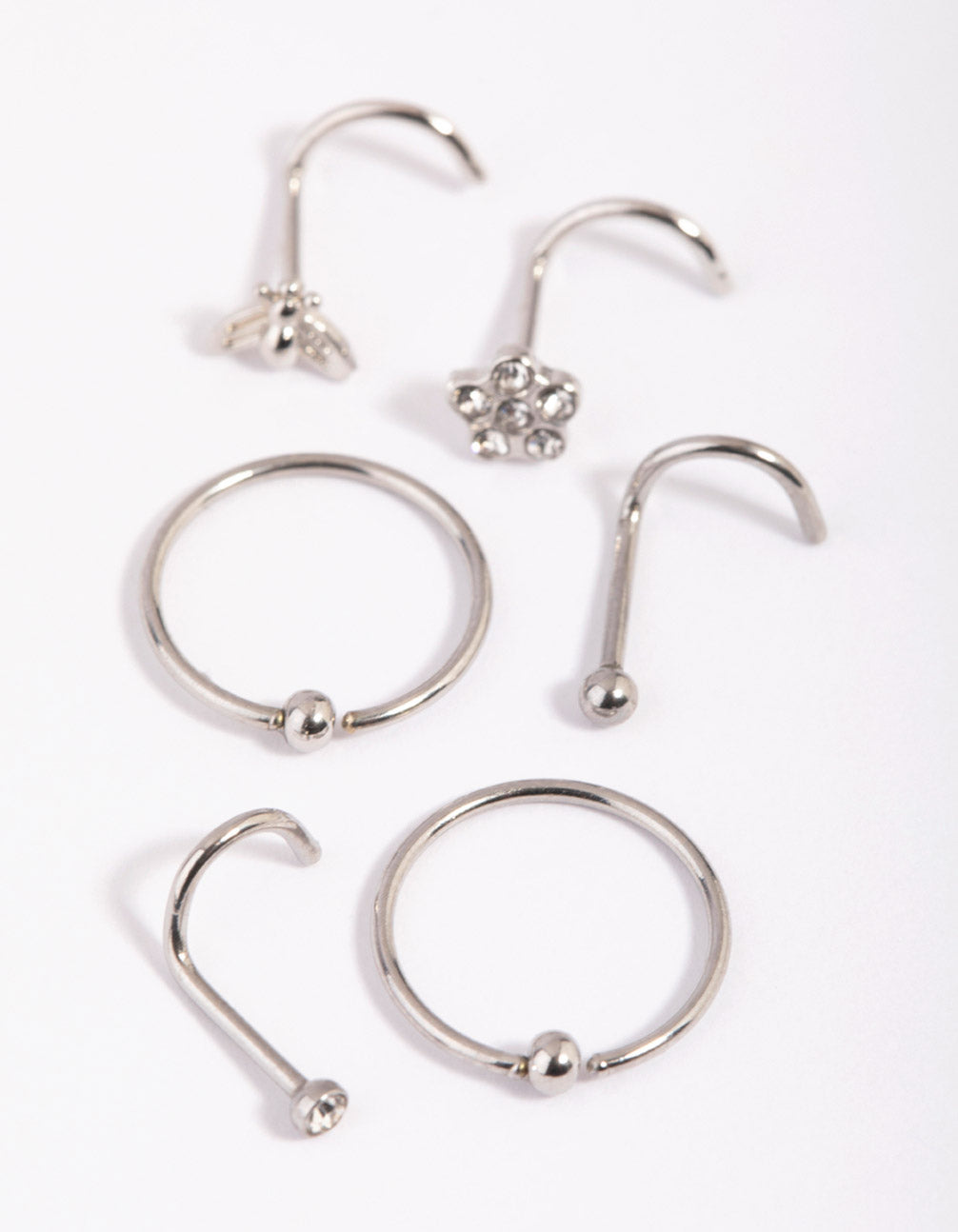 Surgical Steel Flower Nose Stud & Ring 6-Pack