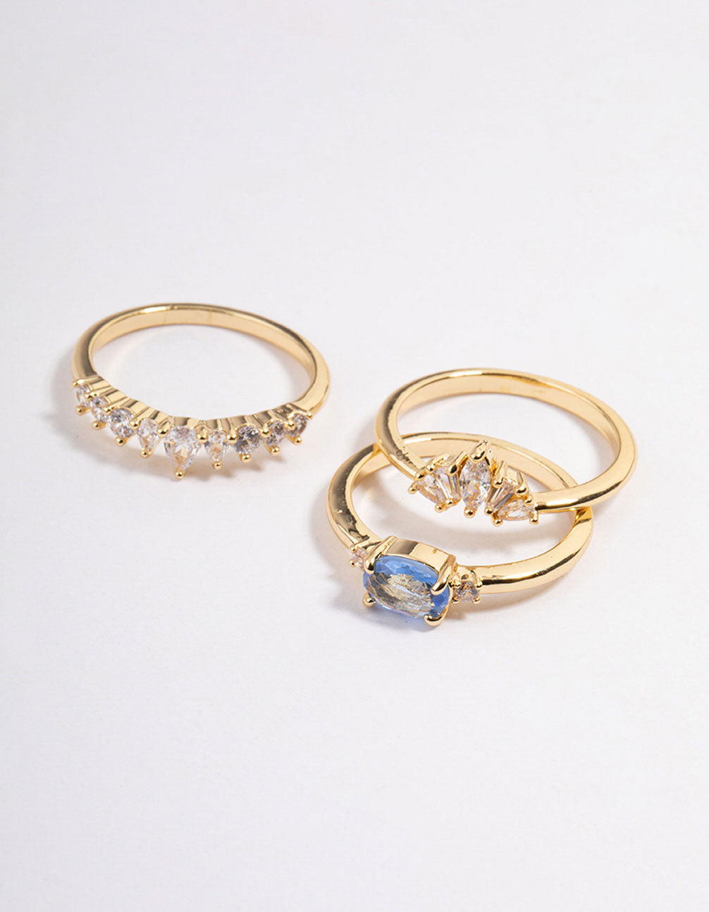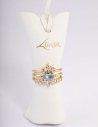 Gold Plated Blue Stone Fan Cubic Zirconia Ring
