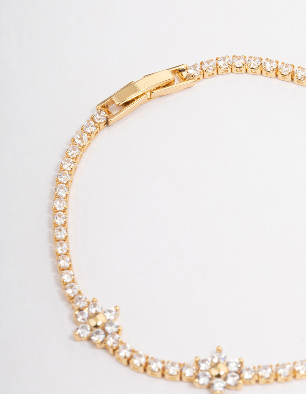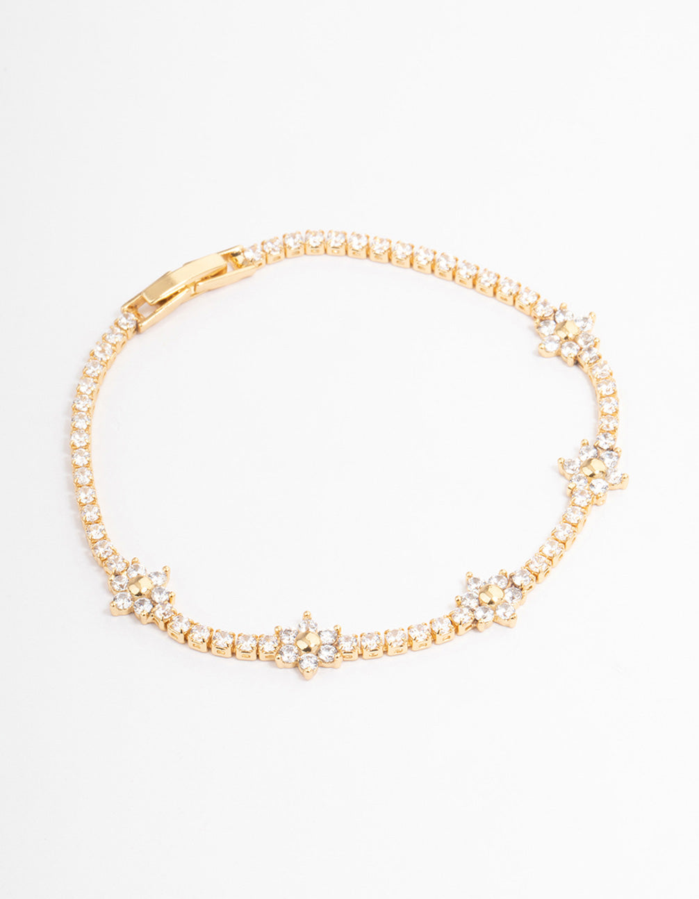 Gold Plated Flower Cupchain Tennis Bracelet Gold Plated Flower Cupchain Tennis Bracelet Gold Plated Flower Cupchain Tennis Bracelet