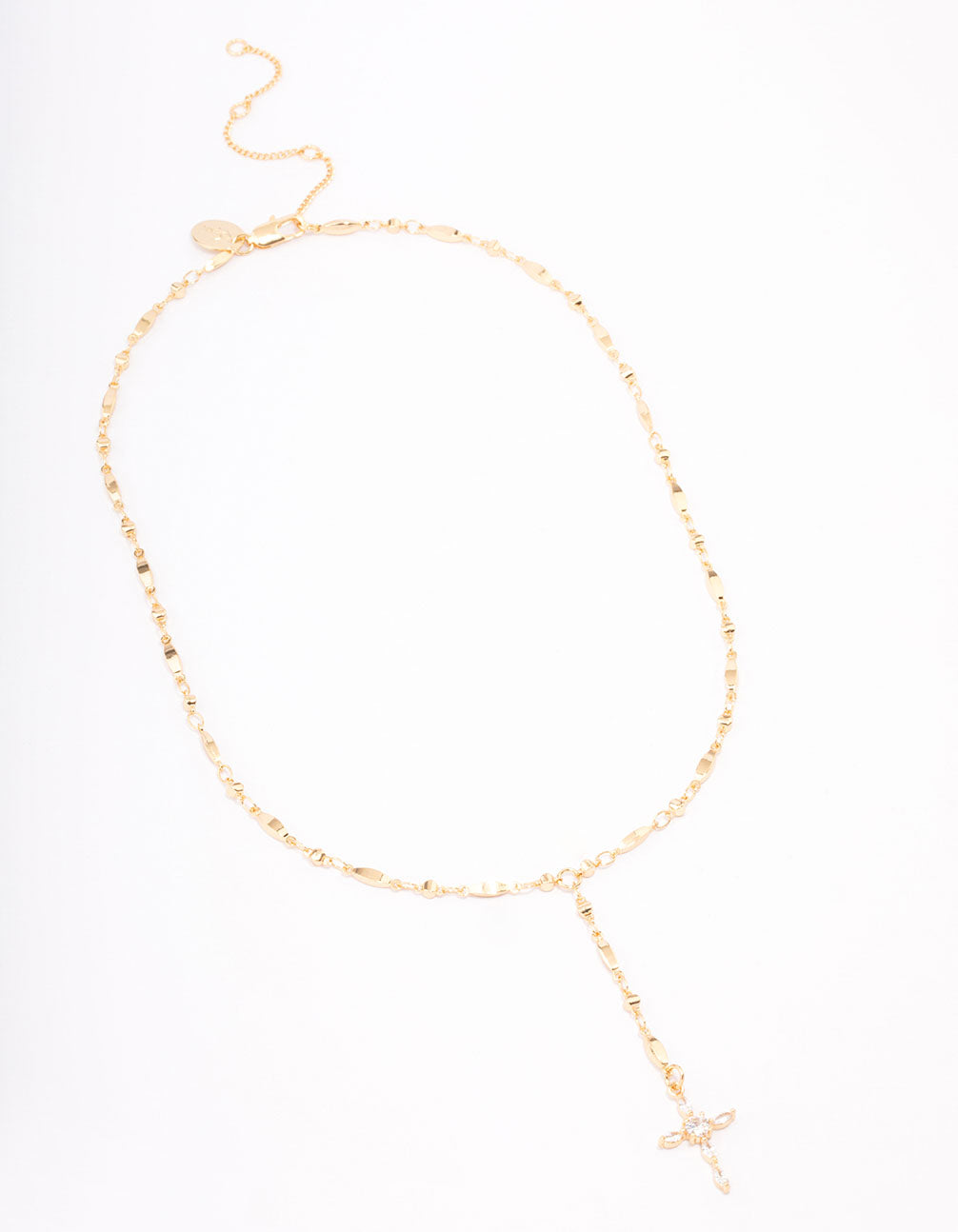 Gold Plated Marquise Cubic Zirconia Cross Y-Necklace