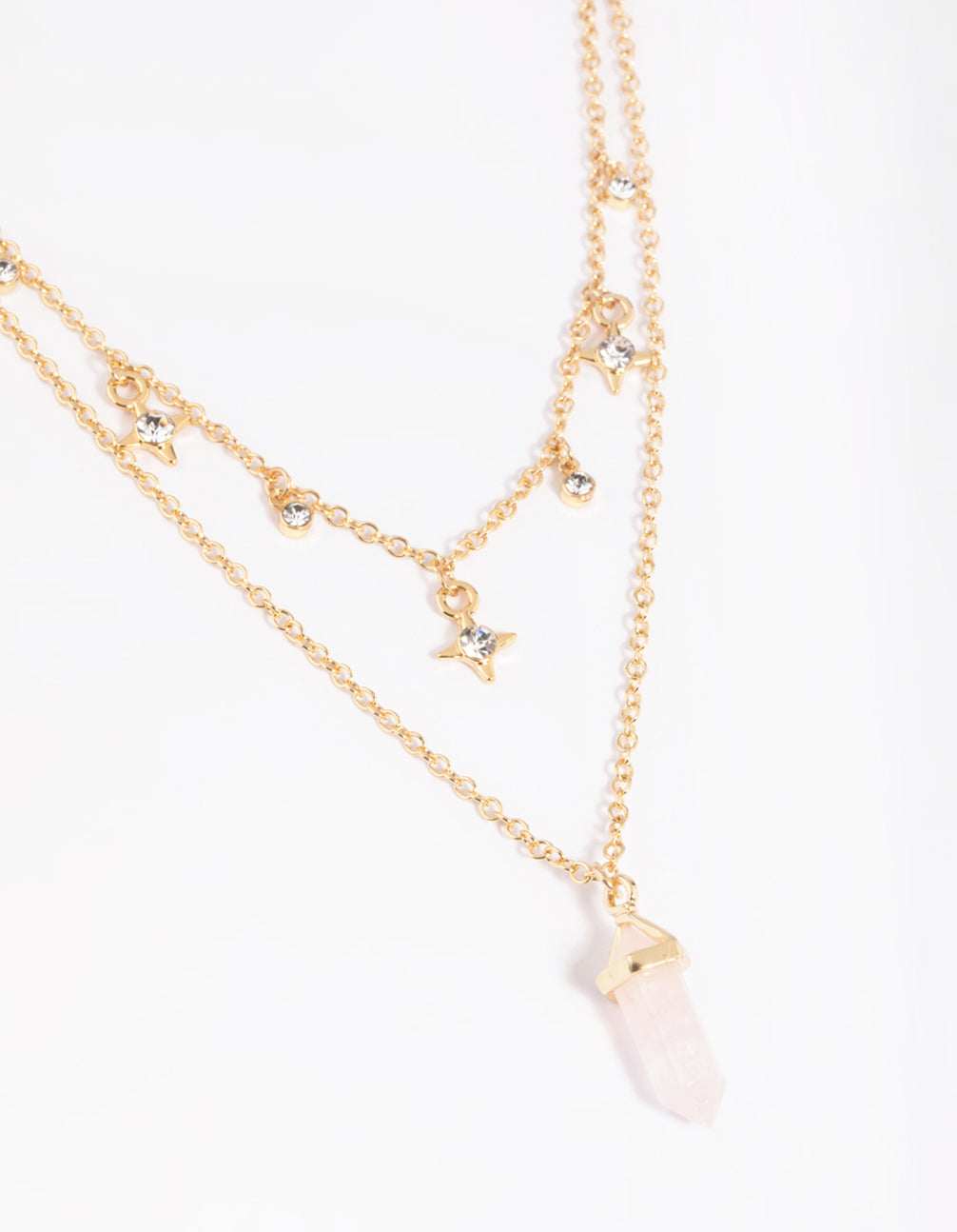 Gold Plated Star & Rose Quartz Layered Necklace