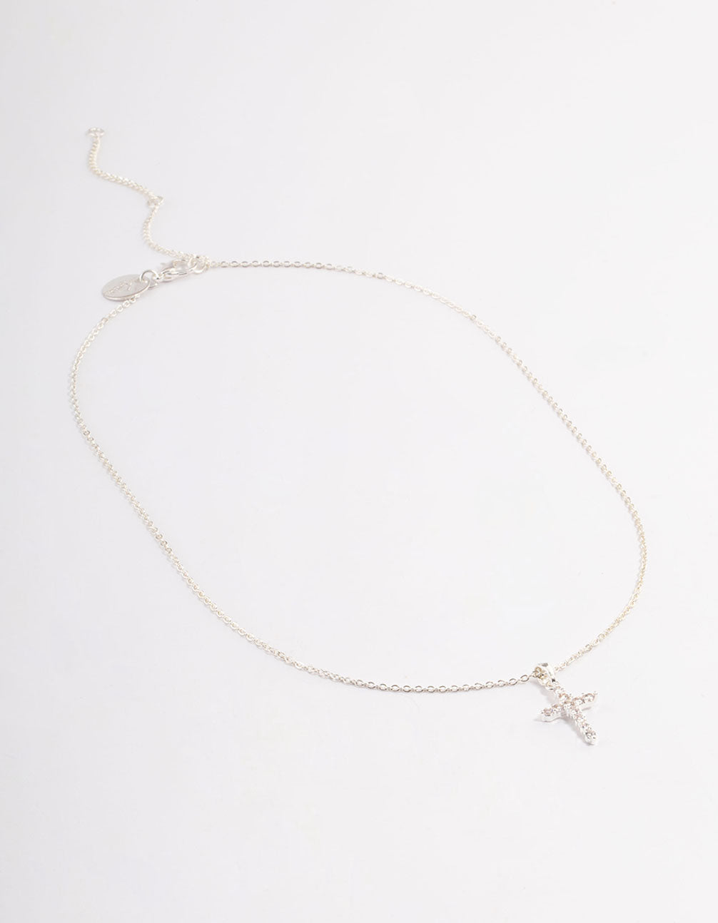 Silver Plated Cubic Zirconia Cross Fine Chain Necklace
