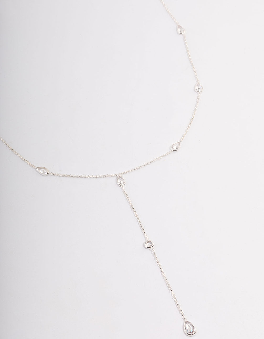 Opt for timeless, quality accessories from our premium Boutique Collection! This diamante, lariat style Y-shaped necklace is crafted with genuine silver plating for long-lasting wear. Style yours with a pair of simple silver studs for a pared back look.