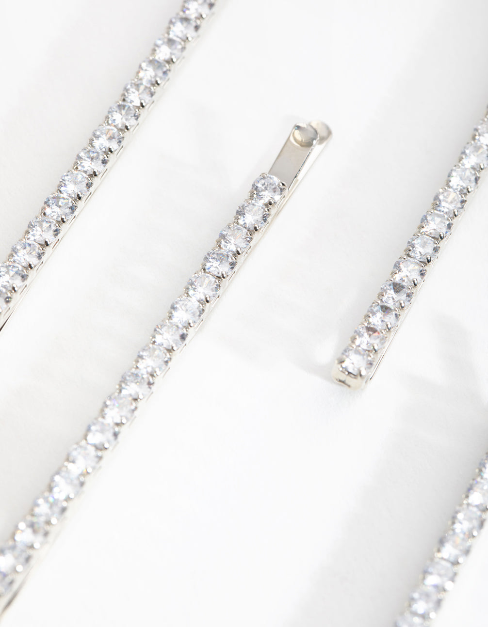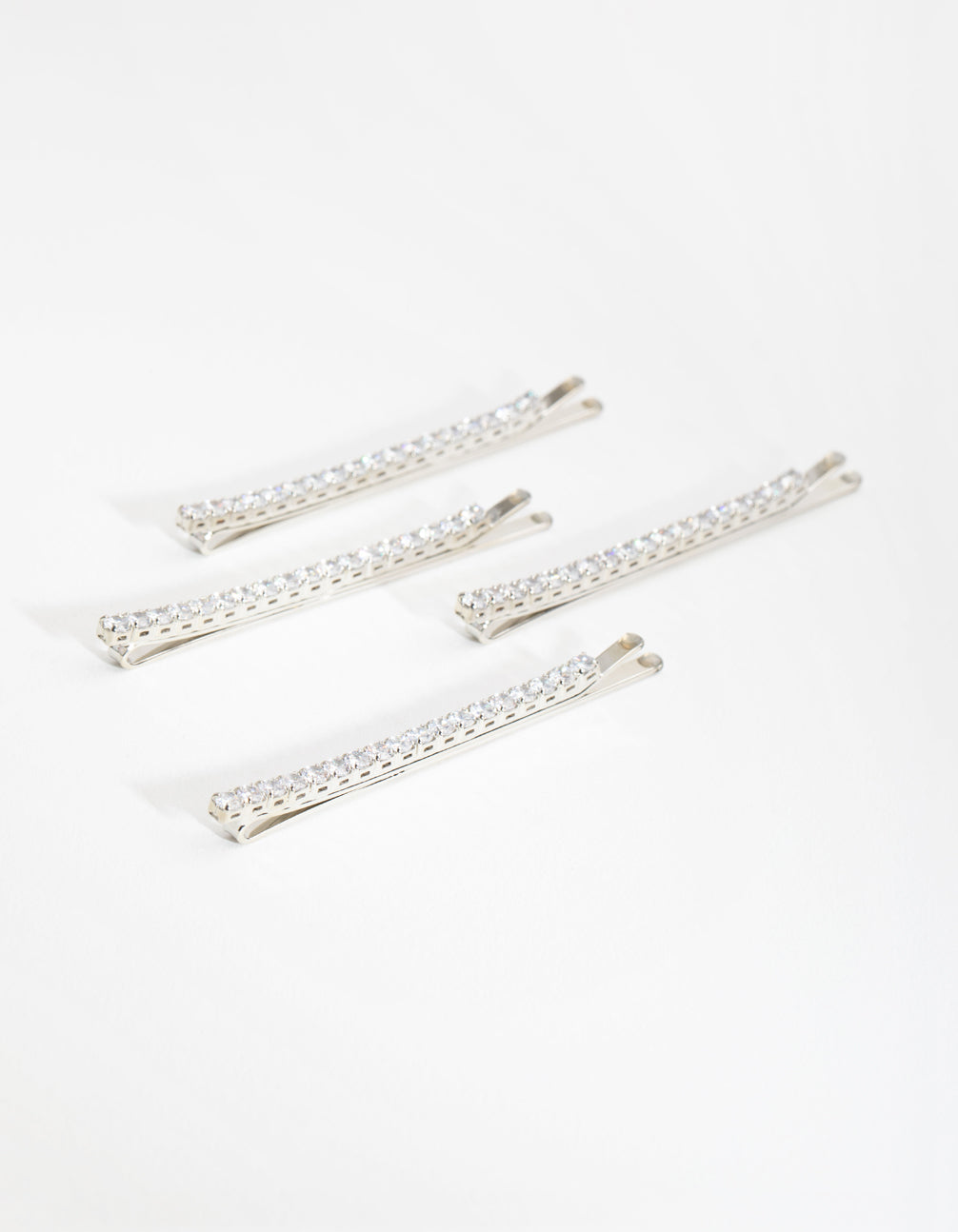 Silver Cubic Zirconia Simple Hair Slide 4-Pack