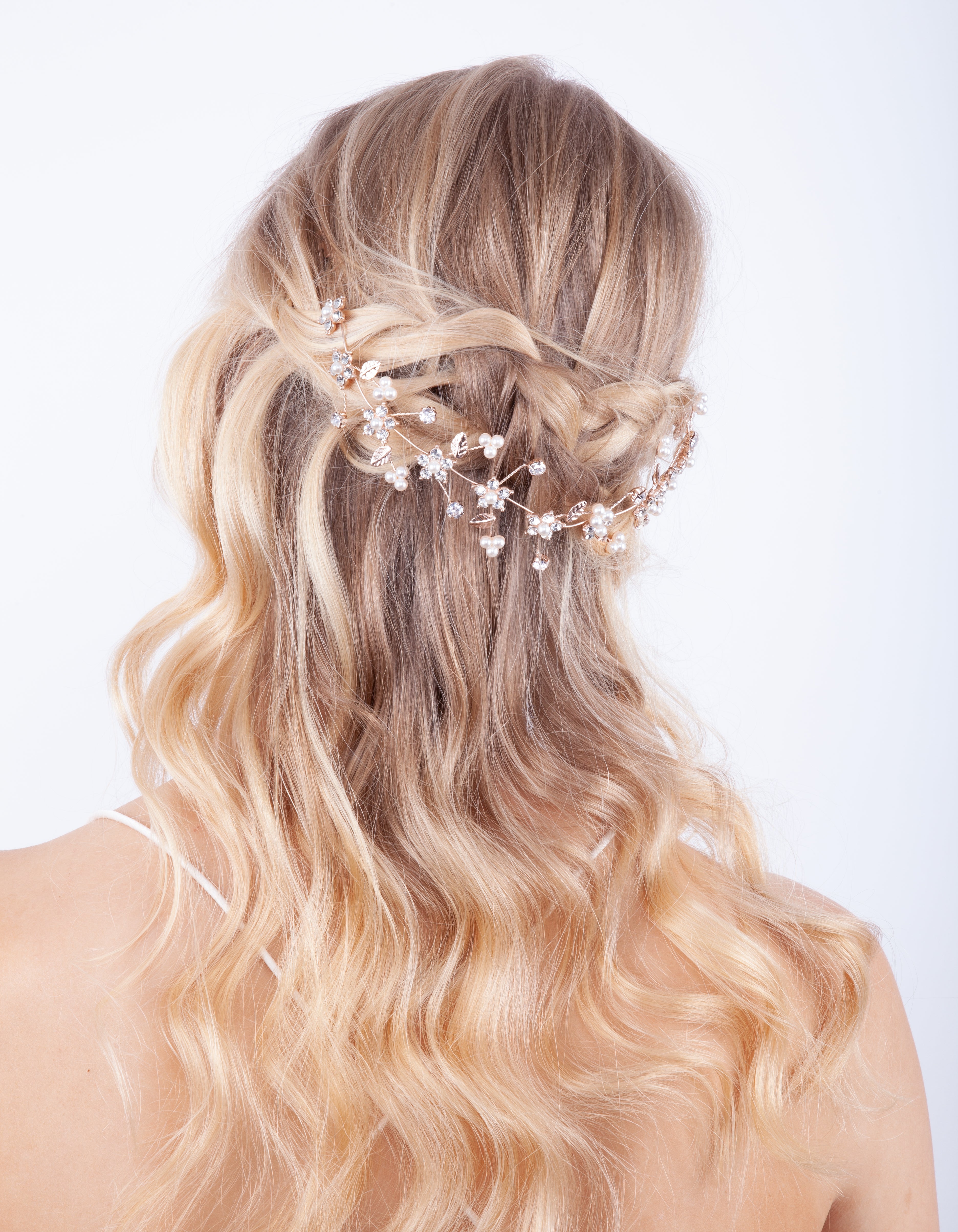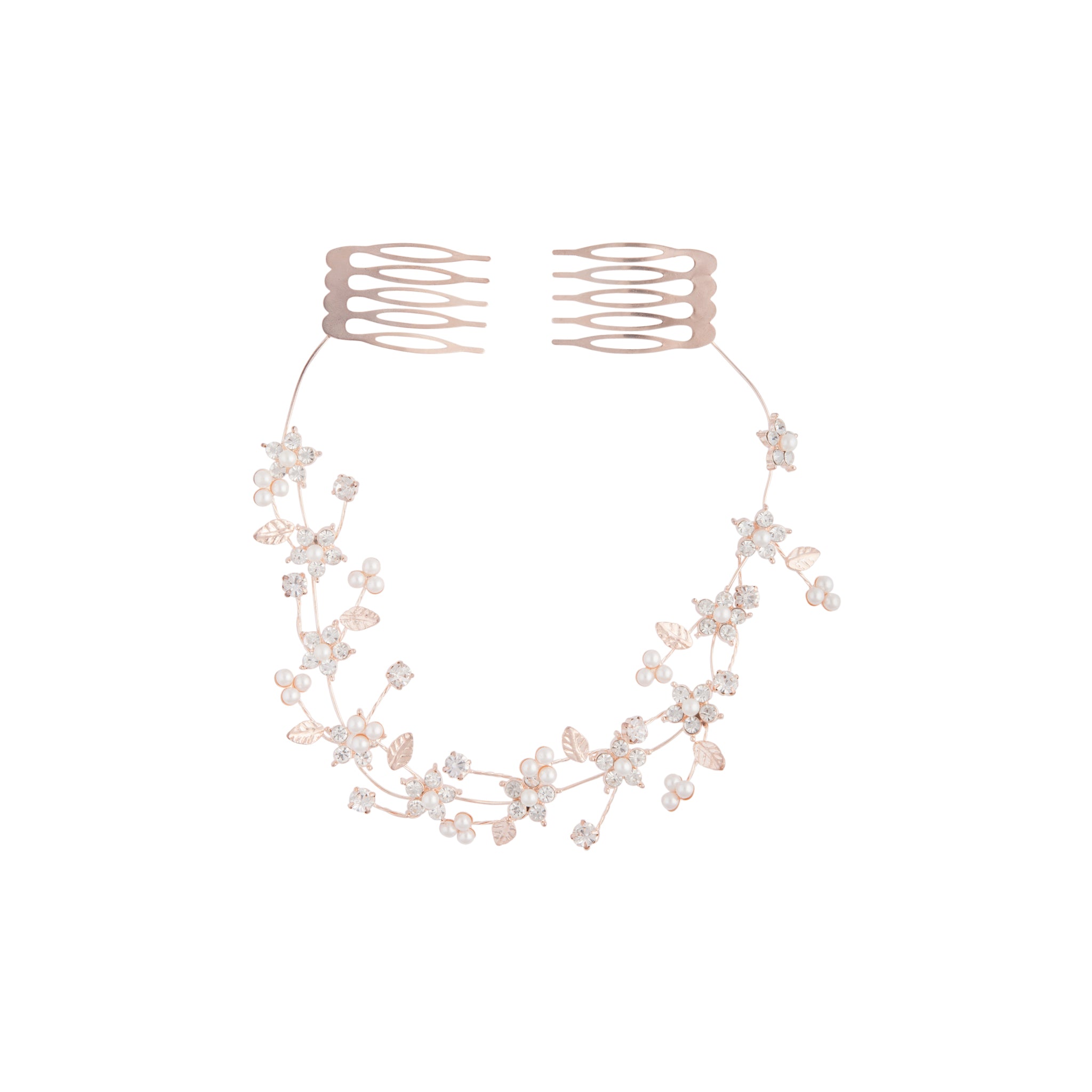 Whether you are heading to a wedding or just wanting to look glamorous for a party, this hair accessory is the perfect way to complete your event ensemble! This rose-gold-toned hair vine comes with a faux pearl embellished floral design. Style into an evening hairstyle and secure with hairspray before sliding this hair wrap into place to make you feel glamorous all night long.