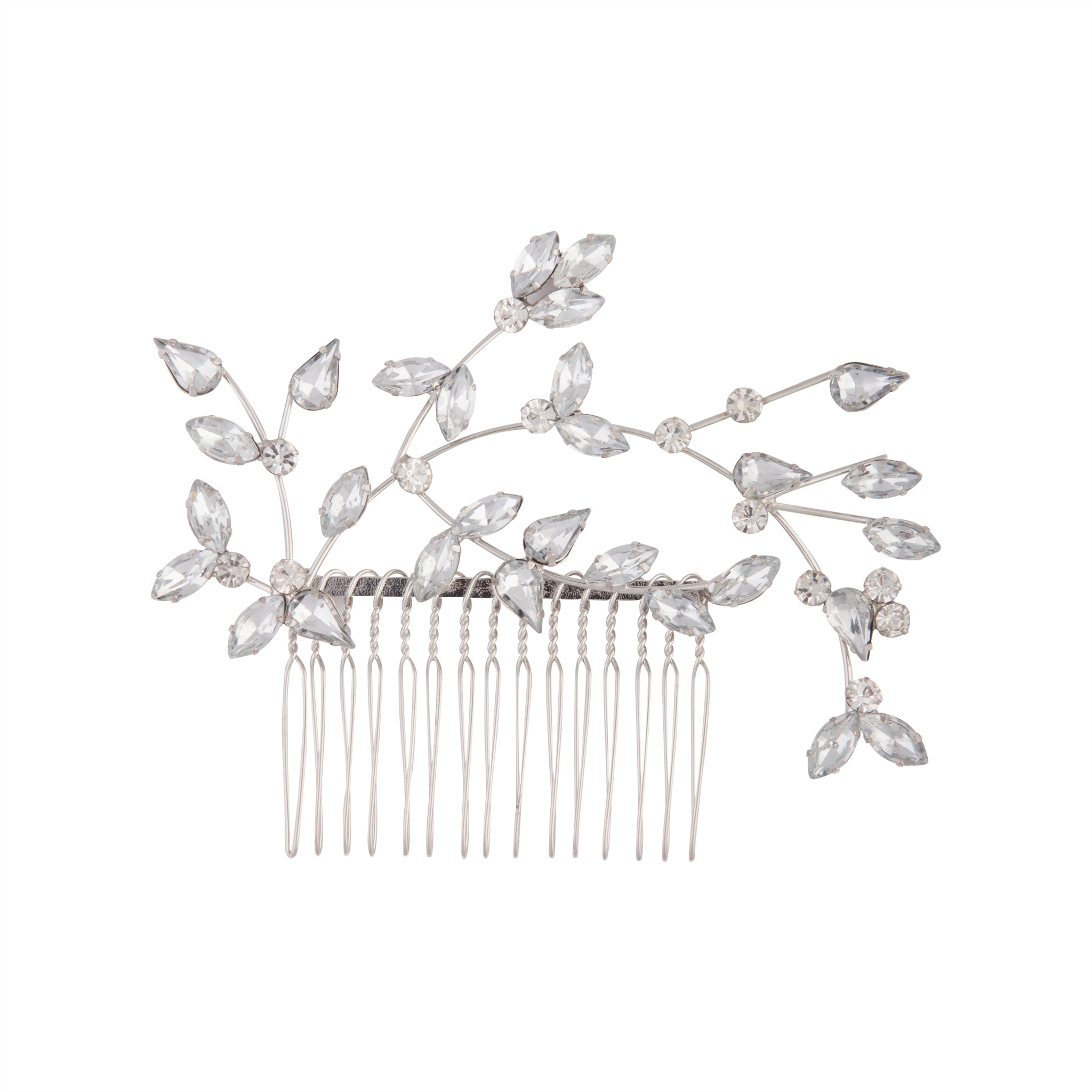 Add some glamour to your daily looks with diamante hair accessories. This clip features a silver-toned setting with a diamante wire comb design. Secure side-swept hair with this stunning slide clip set and style with silver layered necklaces and dainty rings for a delicate look.