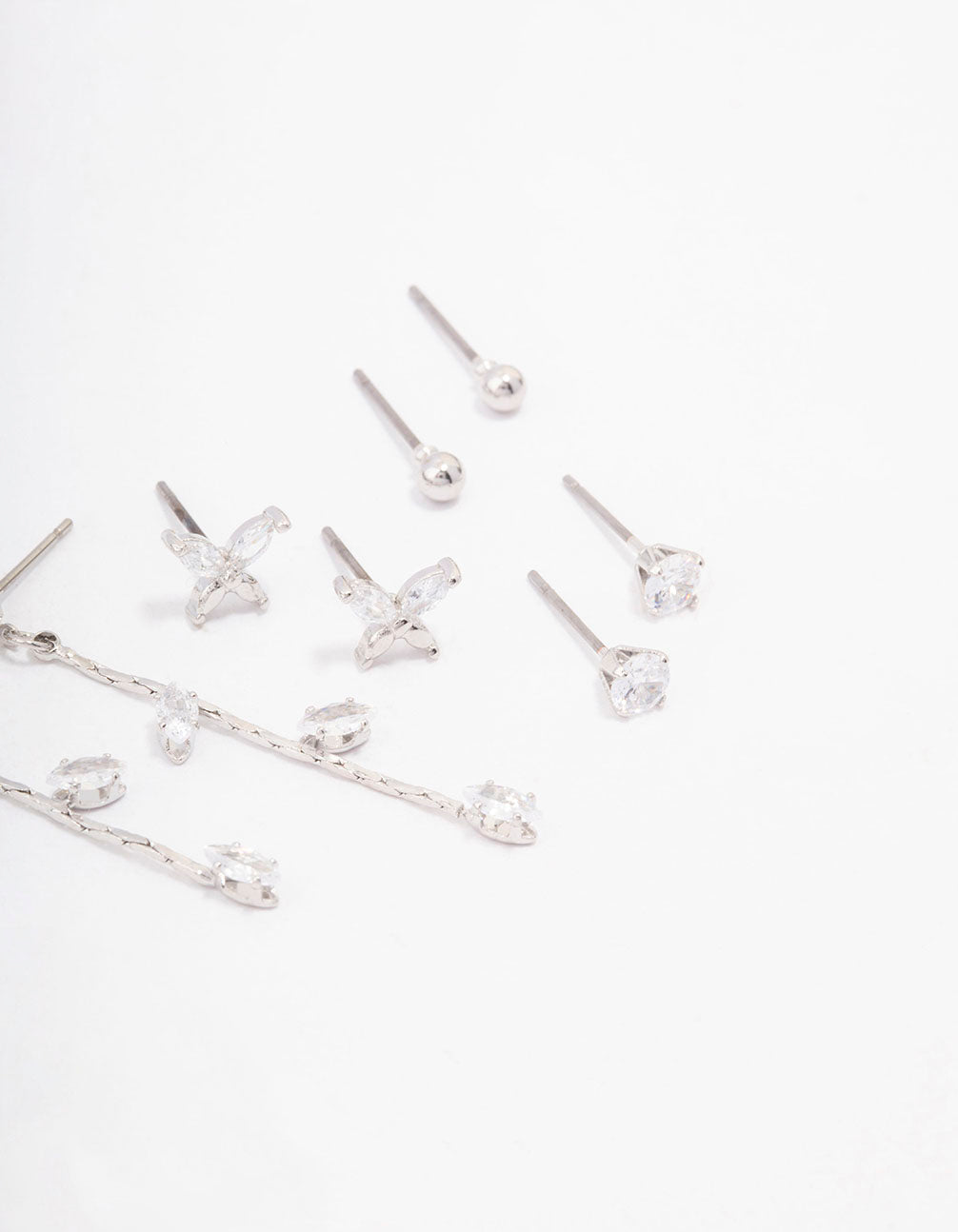 Silver Cubic Zirconia Butterfly & Petal Earring 4-Pack