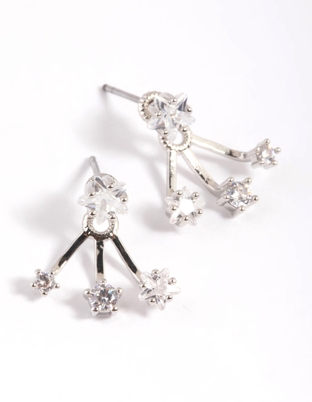 Rhodium Cubic Zirconia Star Jacket Earrings