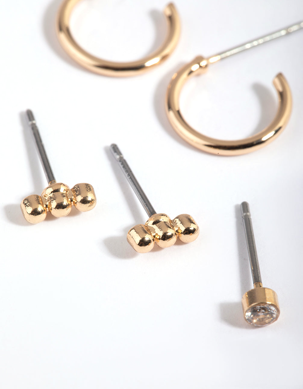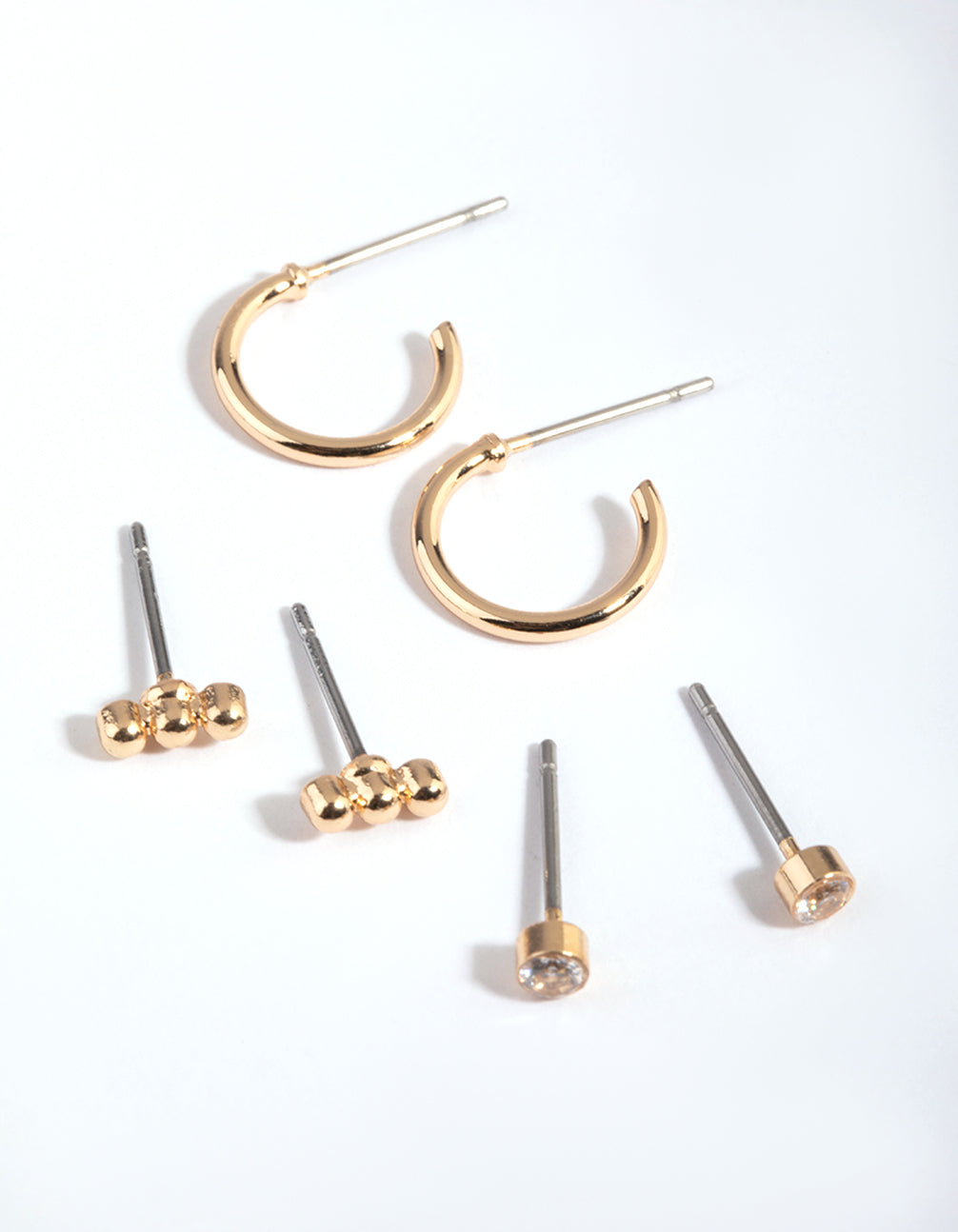 Gold Diamante Stud & Huggie Hoop Earring Stack Pack