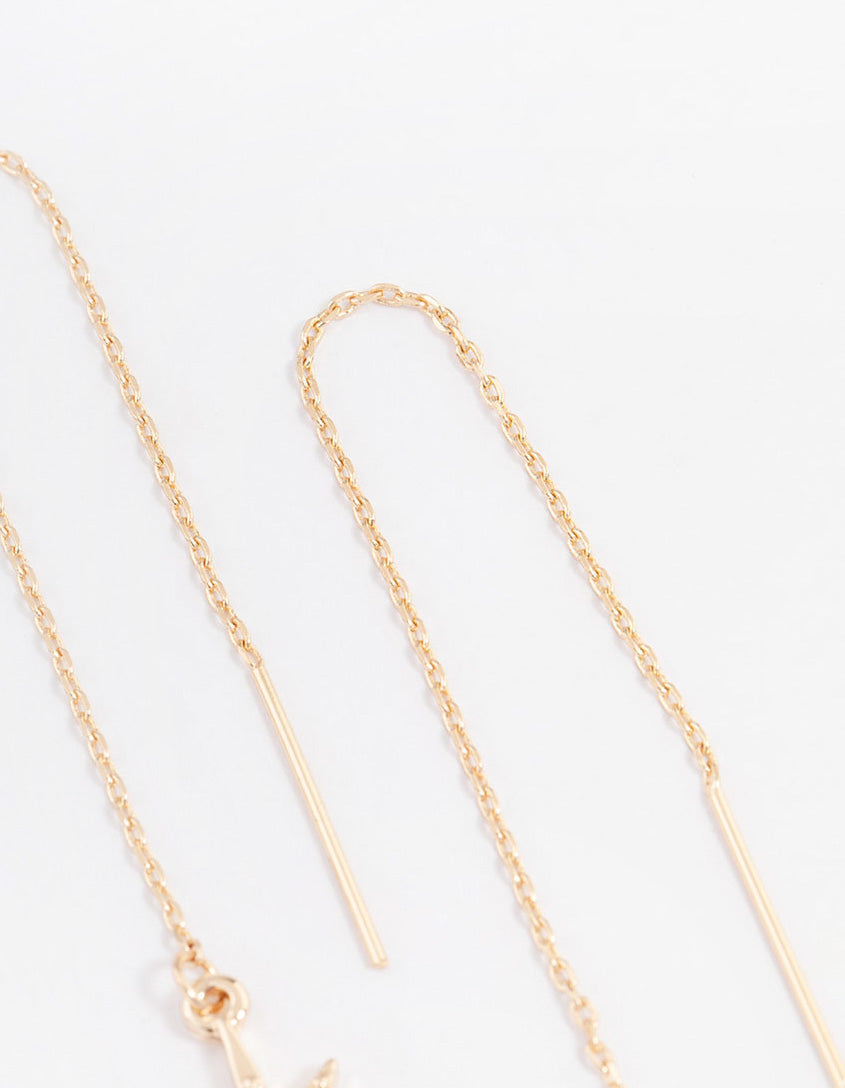 Gold Fine Diamante Star Threader Earrings