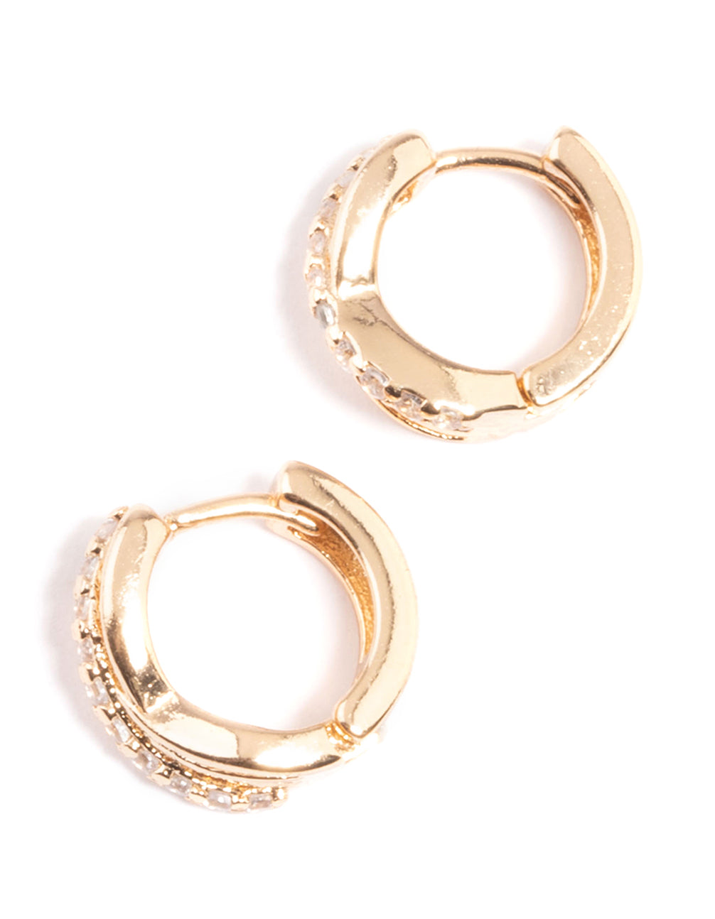 Gold Mini Cubic Zirconia Twist Huggie Earrings