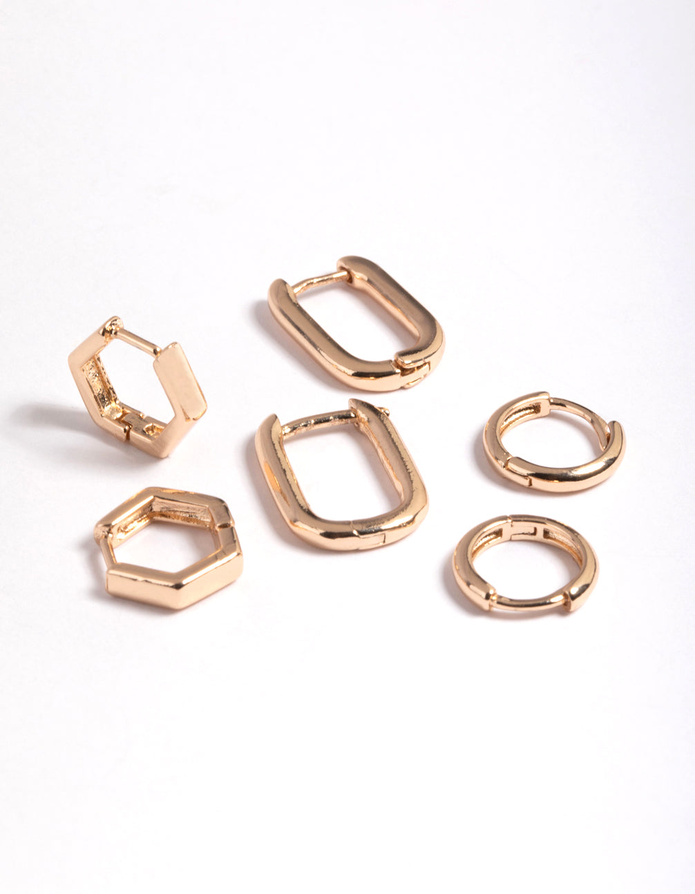 Accessory check! Stack them, layer them or mix-and-match them. This oh-so-dainty three pack of gold, mini shaped earrings are the perfect staple piece to add a little something extra to your collection.