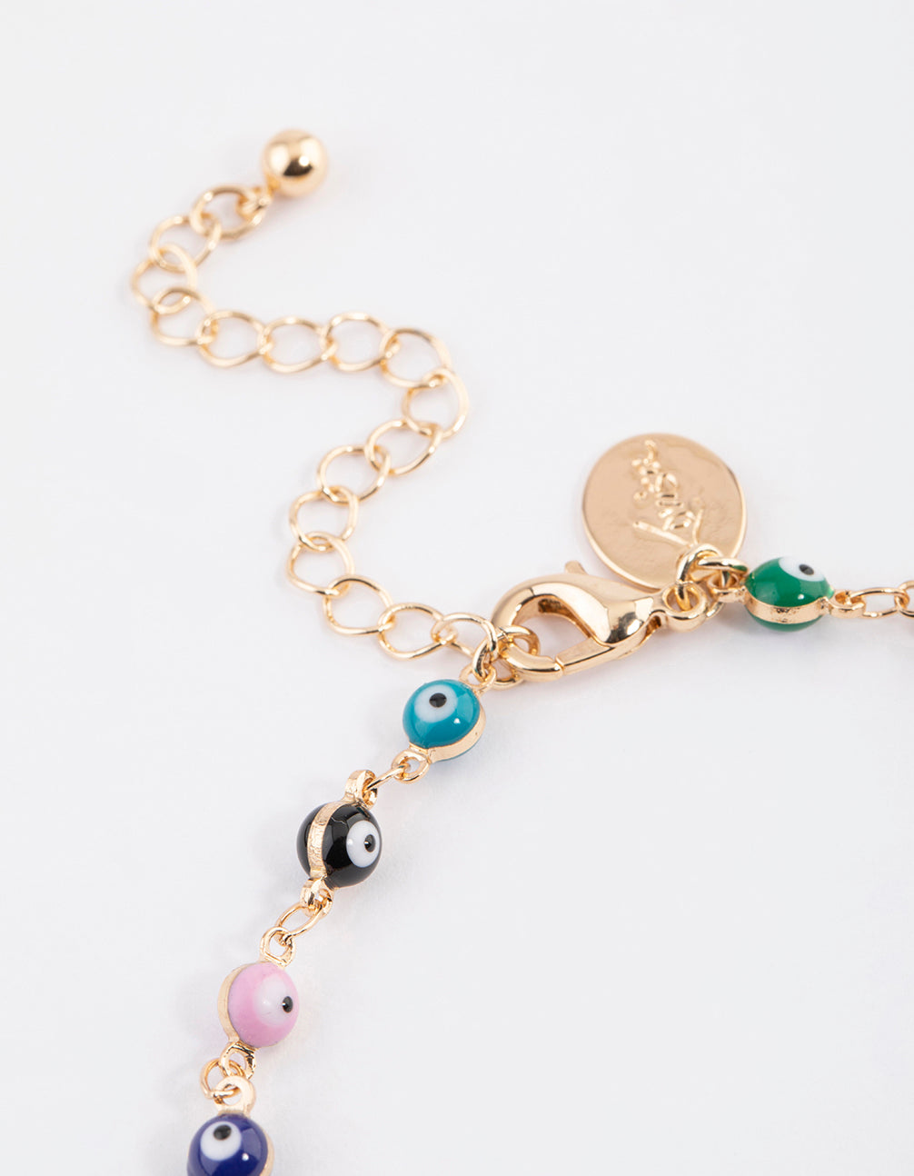 • This gold-toned, evil eye chain anklet features a collection of multi-coloured evil eye charms - perfect for protecting your energy!