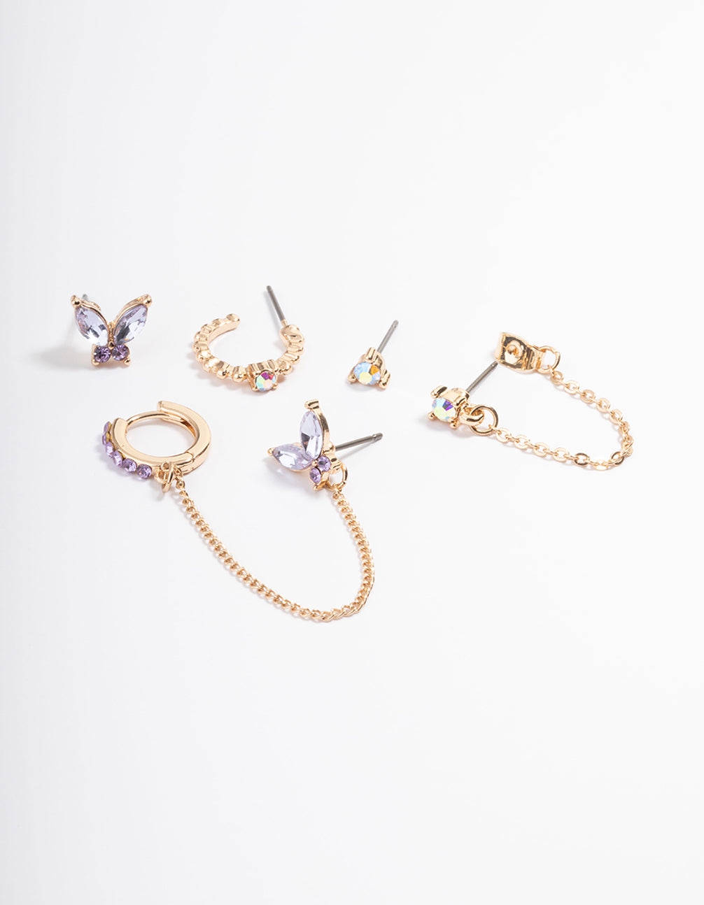 Gold Purple Butterfly Earring Pack
