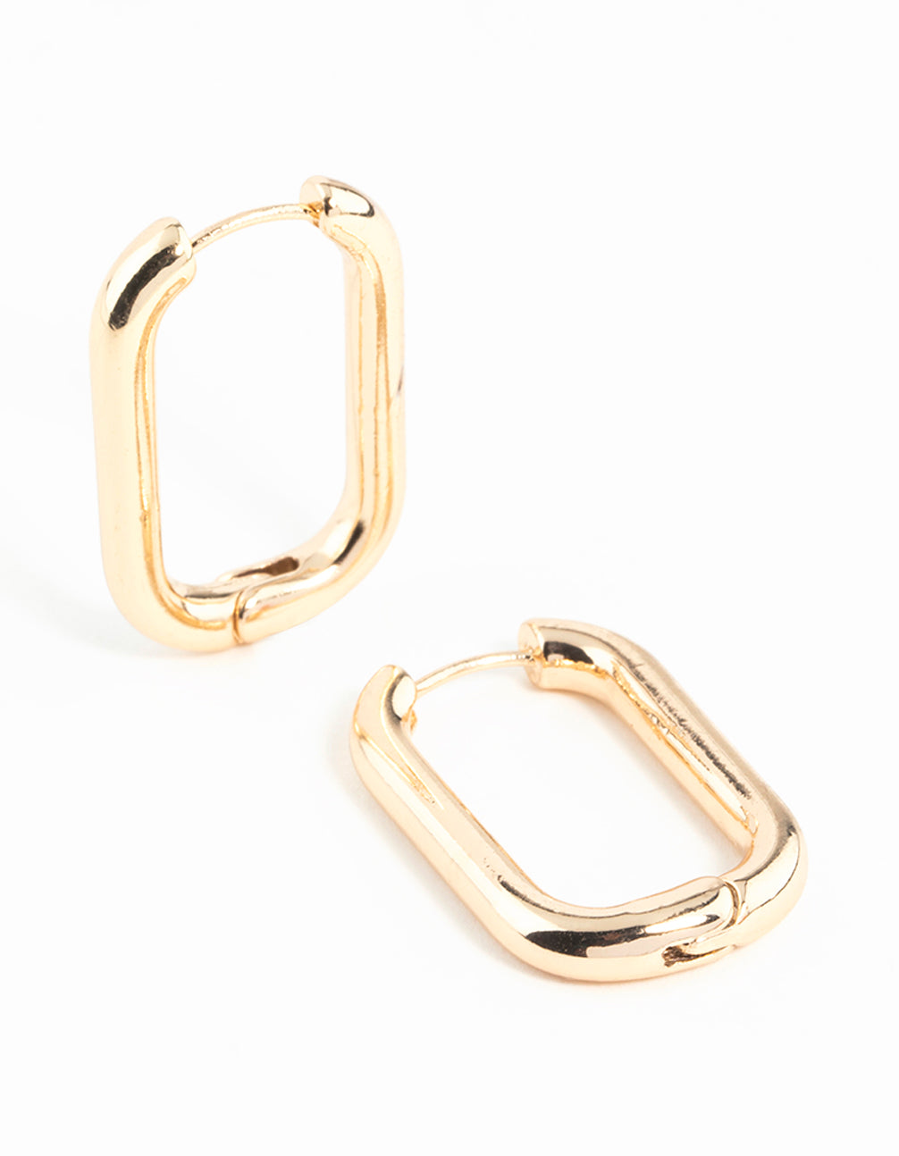 Layer up and create the perfect ear stack with huggies! These rounded square huggie hoops are made to suit multiple piercings and feature a gold-toned setting.
