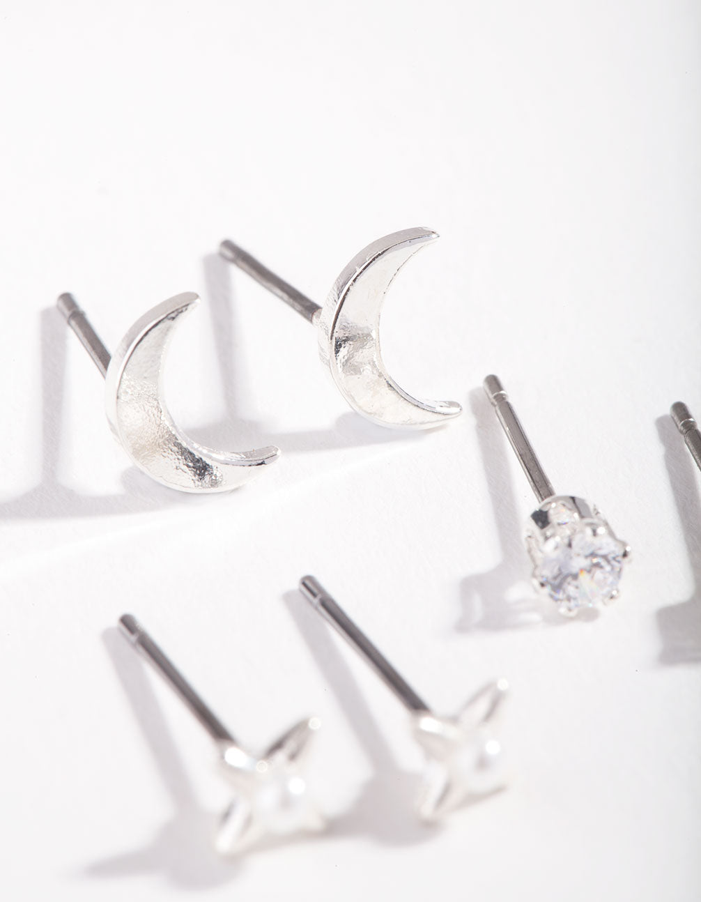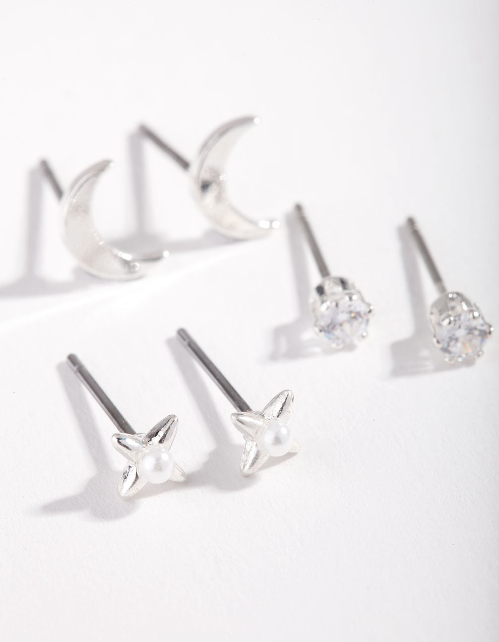 Layer up and create the perfect ear stack with a Lovisa micro earring stack pack! This pack features a variety of mini crescent moon pearl stud earrings in a silver tone.