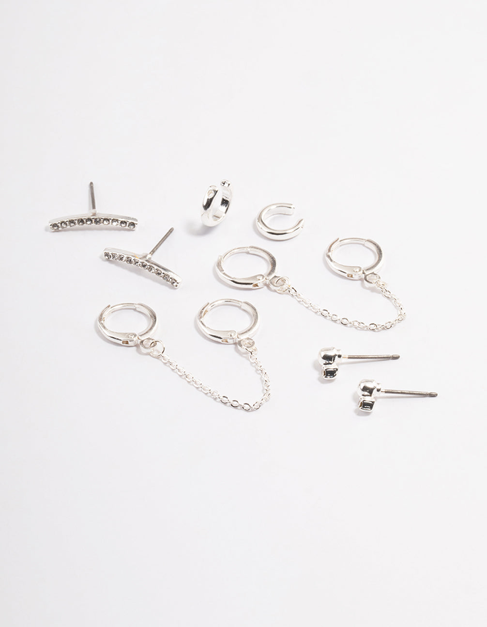• Silver Diamante Huggie Chain Earrings 5-Pack - link has visual effect only