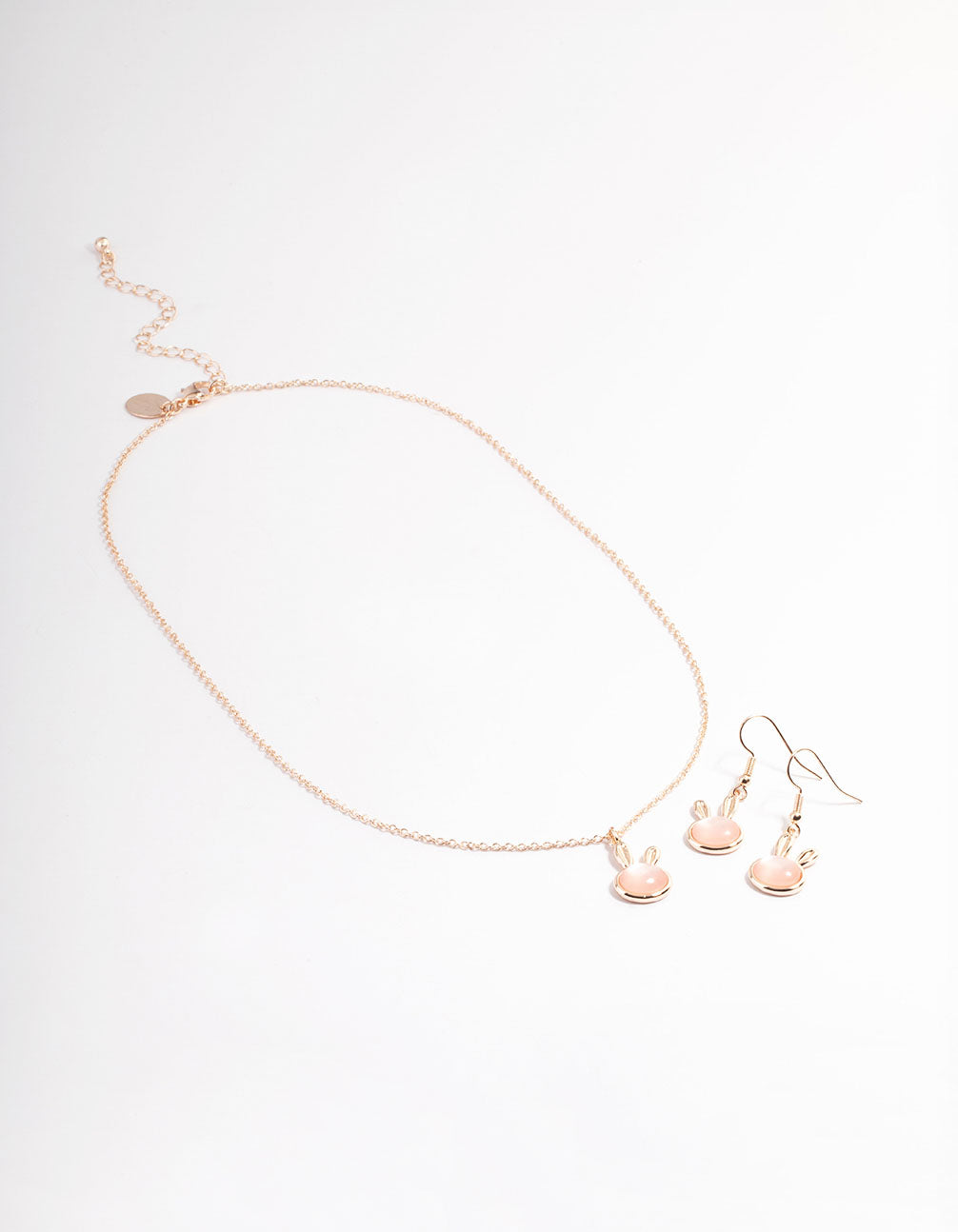 Rose Gold Blush Bunny Necklace & Drop Earrings Set