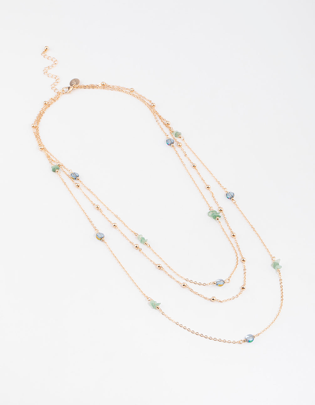• Gold Triple Row Mixed Ball Chain Stone Necklace - link has visual effect only