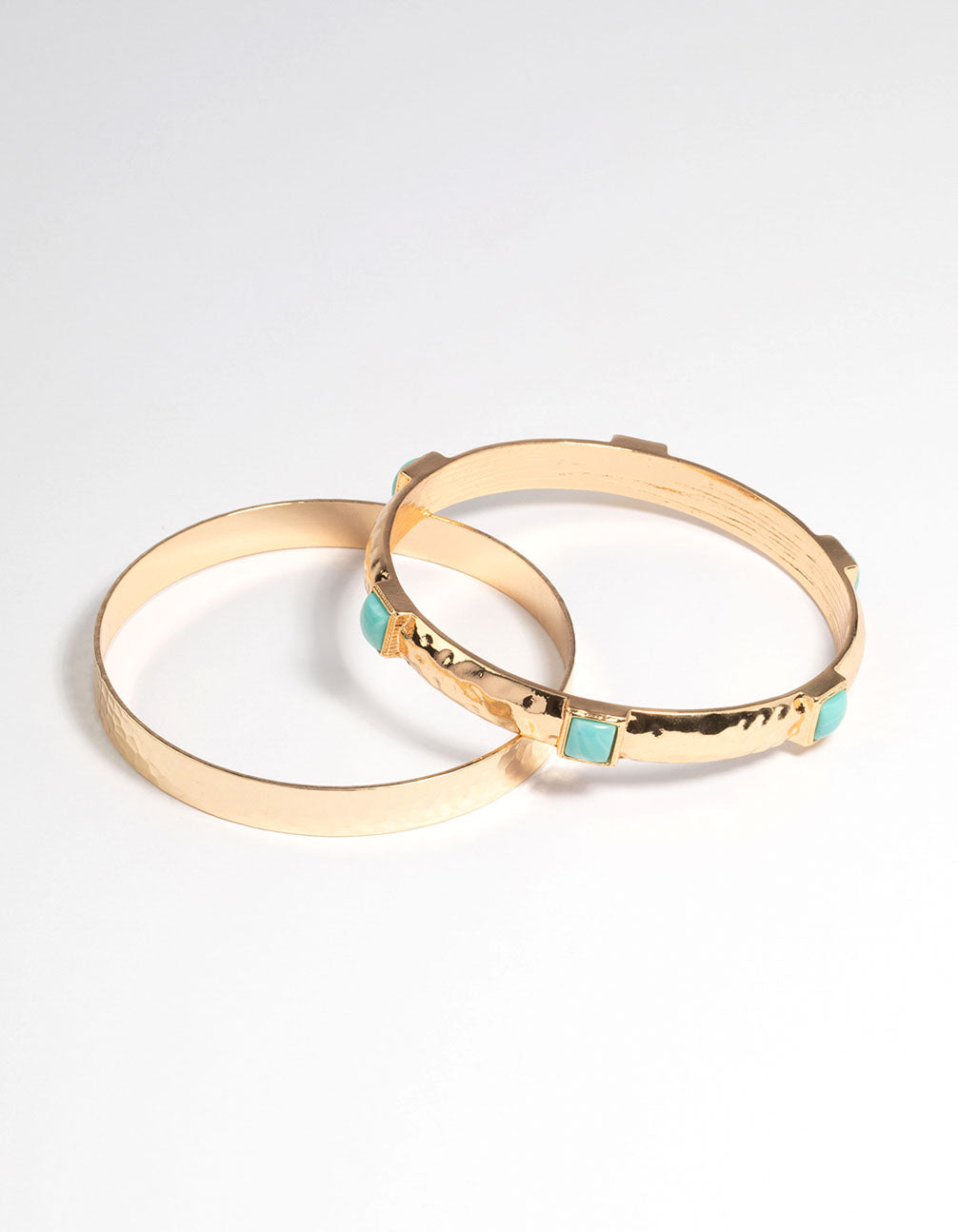 Style our Gold Chunky Stone Bangle Bracelet 2-Pack with some simple gold accessories from our Gold Plated Collection for the ultimate 'it-girl on vacation' look.