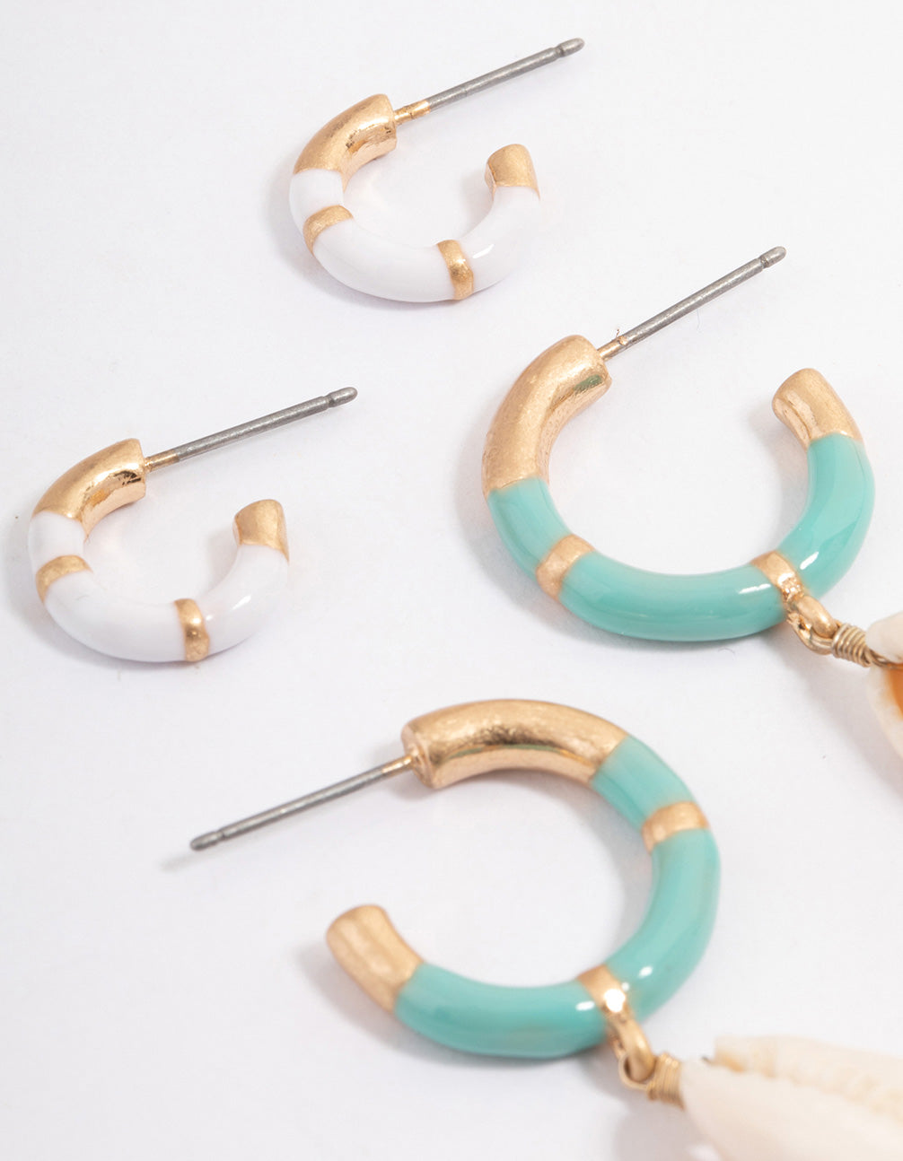 Gold Enamel Shell Hoop Earring Pack