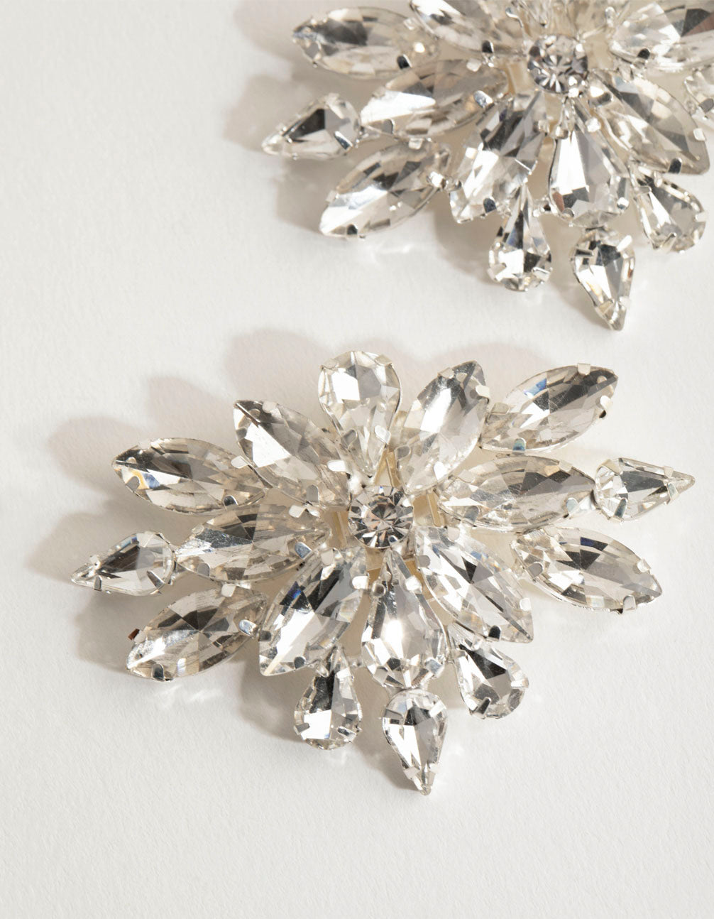 Embellish your shoes to add a touch of elegance! These clips can be attached to a plain shoe to create an elevated look. They feature a statement floral design comprised of large crystal-like diamantes.