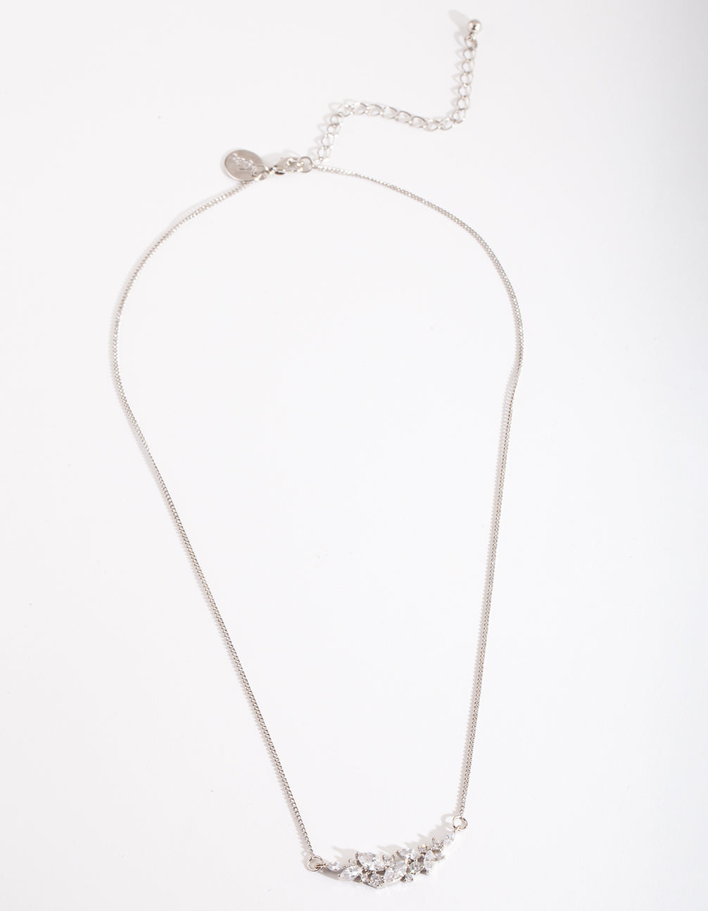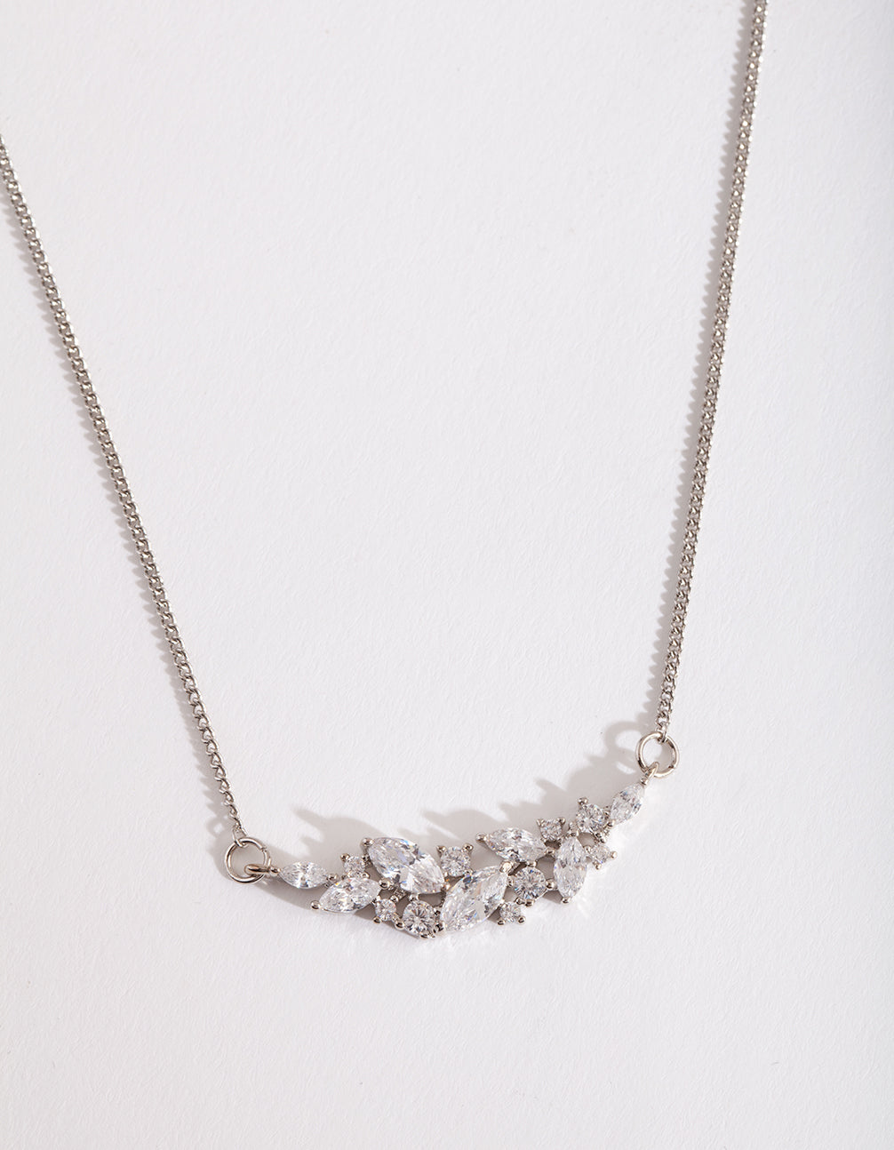 Diamond simulants are cut to be indistinguishable to the human eye from a real diamond, making them a luxurious addition to any collection. This necklace features a floral motif on a silver-toned setting.