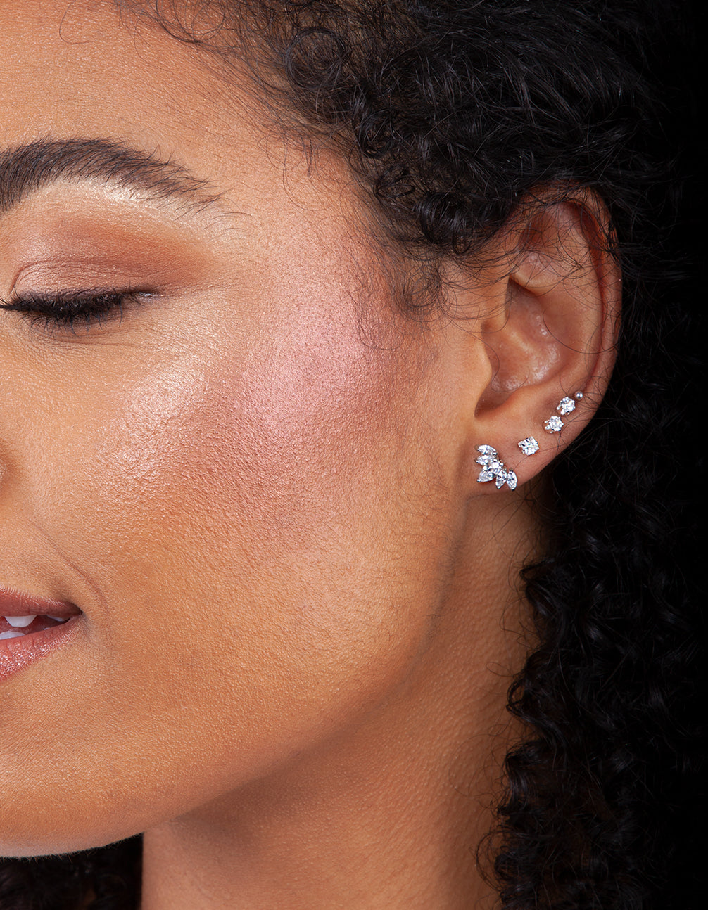 This piece can be used on any cartilage ear piercing. Pair it with a crystal jacket stud to dress up your whole ear! It has a gauge of 16 and a length of 1.2mm. It has a surgical steel post, which makes it more gentle for daily use. Wear the earring set individually or stack multiple piercings with other Lovisa silver designs.