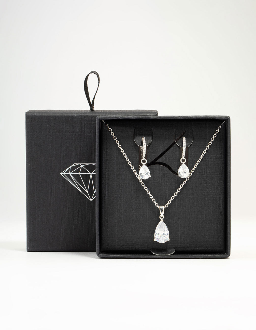 Silver Plated Cubic Zirconia Teardrop Necklace & Earrings Set