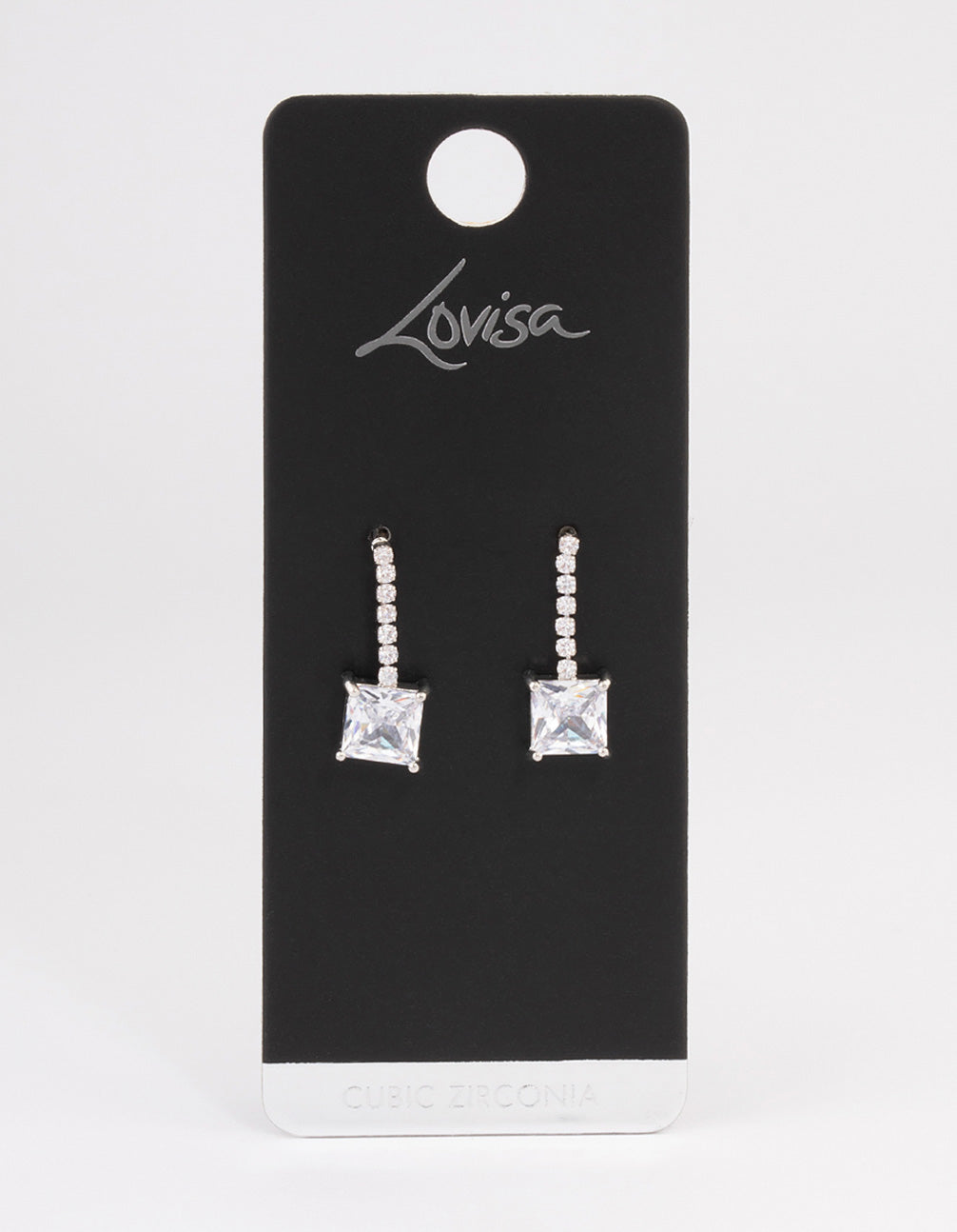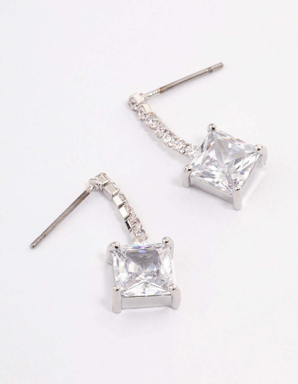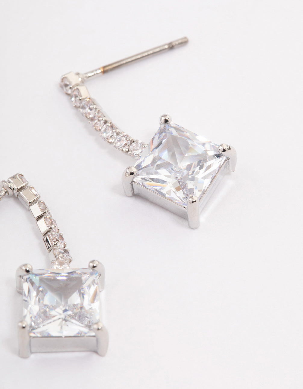 - Style these silver-toned, square stone drop earrings with a simple, diamante tennis bracelet for a timeless look.