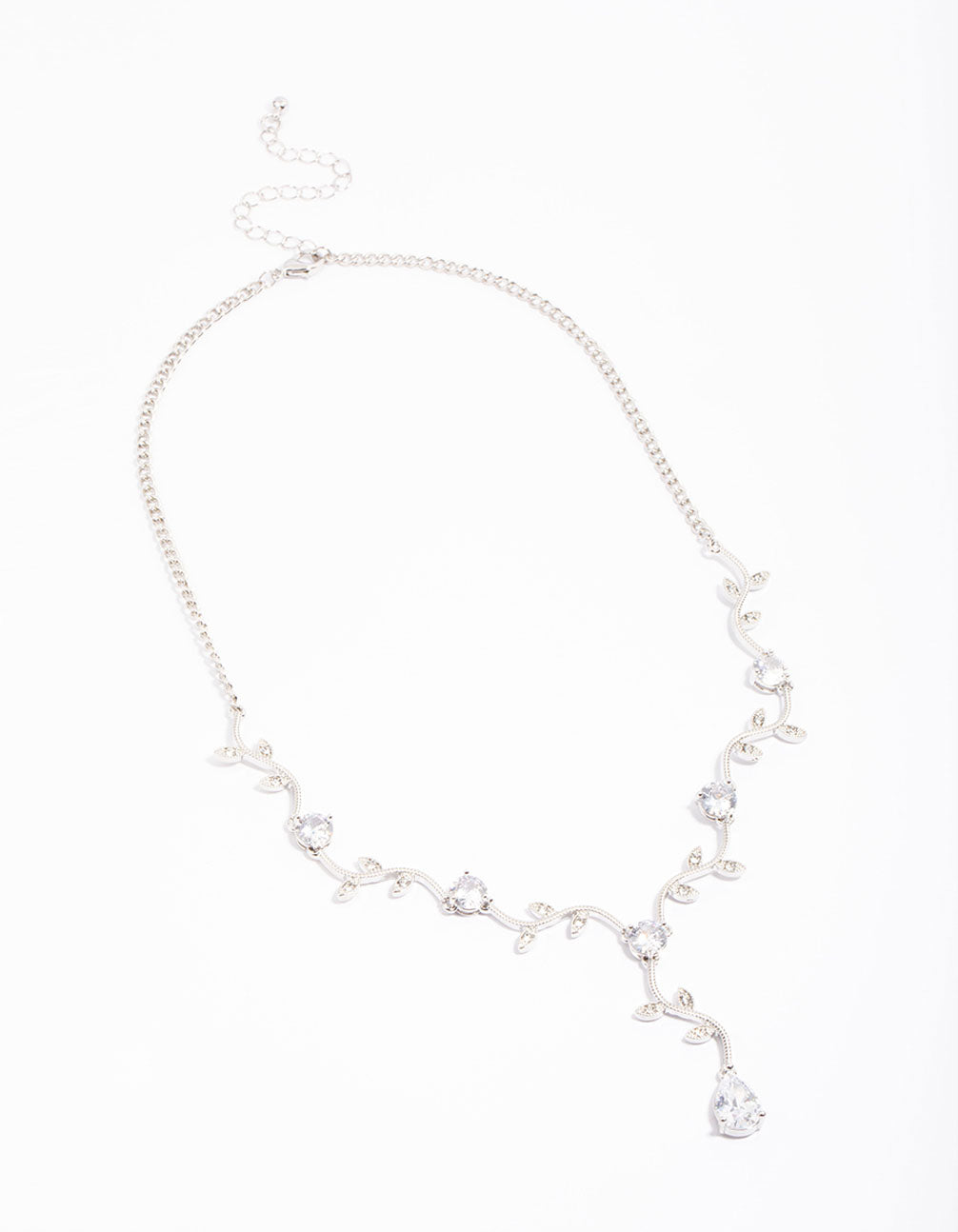 This gorgeous Y-shaped necklace features a silver setting and floral design, encrusted with delicate crystals for a stand-out look.