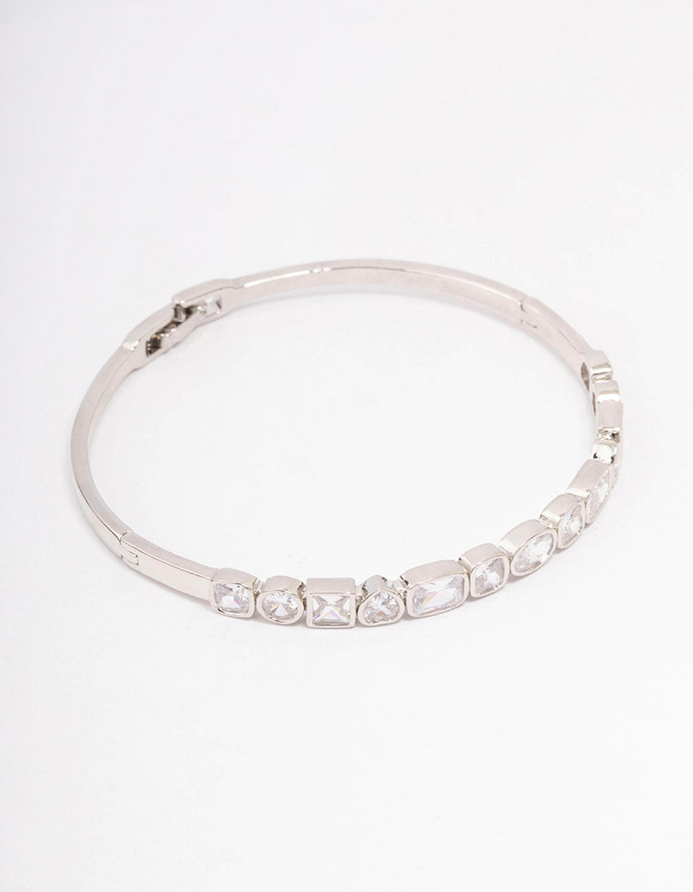 Silver Cubic Zirconia Mixed Shape Stone Bangle