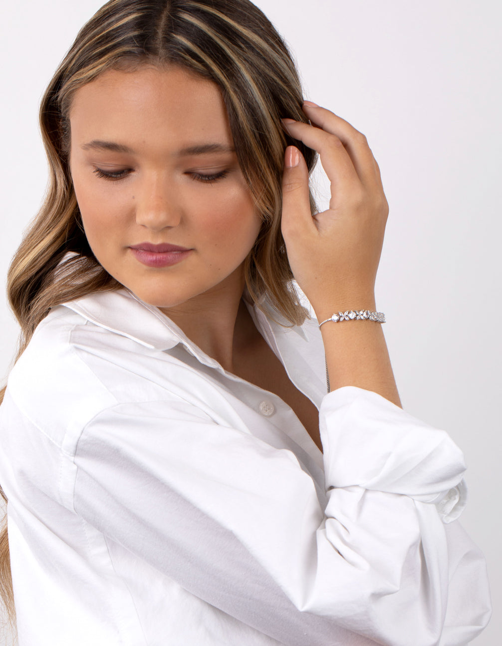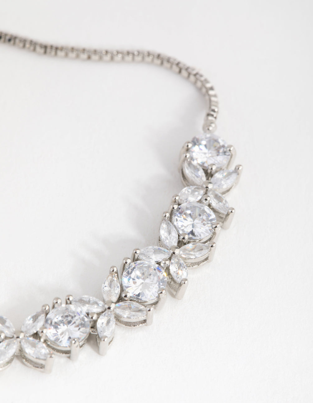 Silver Cubic Zirconia Navette Flower Toggle Tennis Bracelet