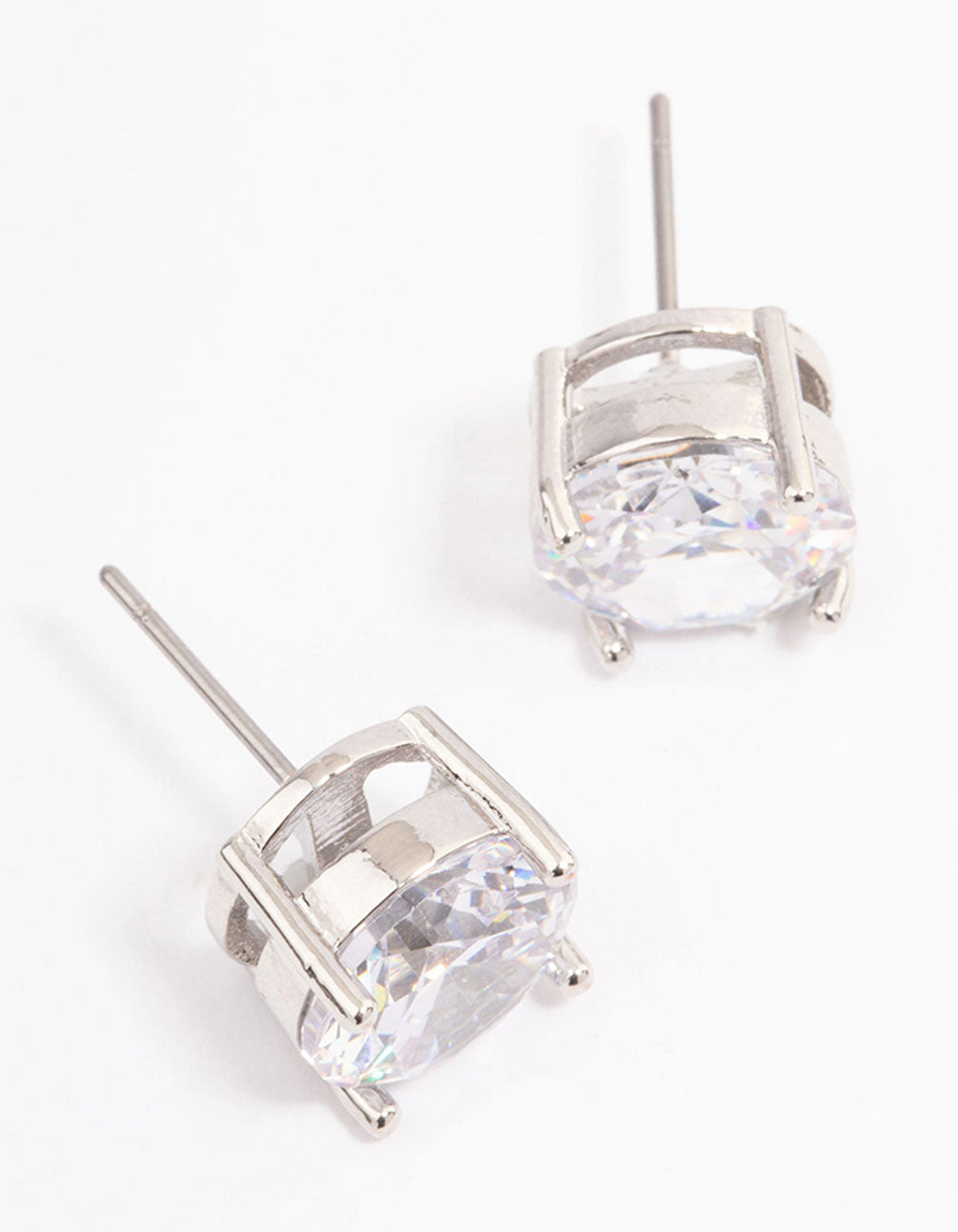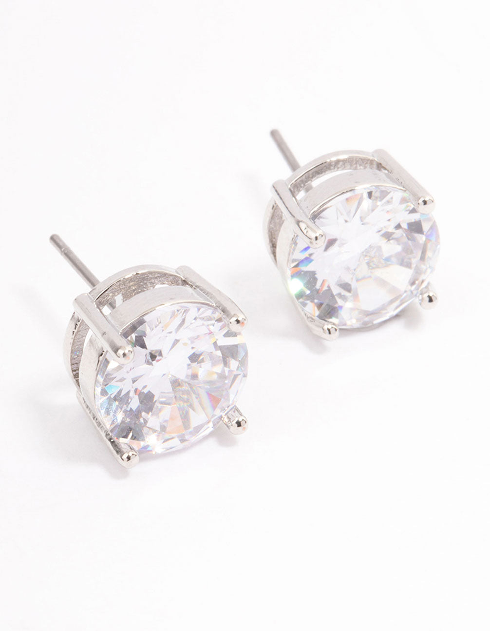 Silver Cubic Zirconia Round Statement Stud Earrings