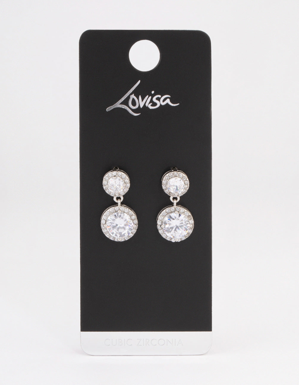 - Style these silver-toned, double halo drop earrings with a matching cubic zirconia tennis bracelet for a luxe look.