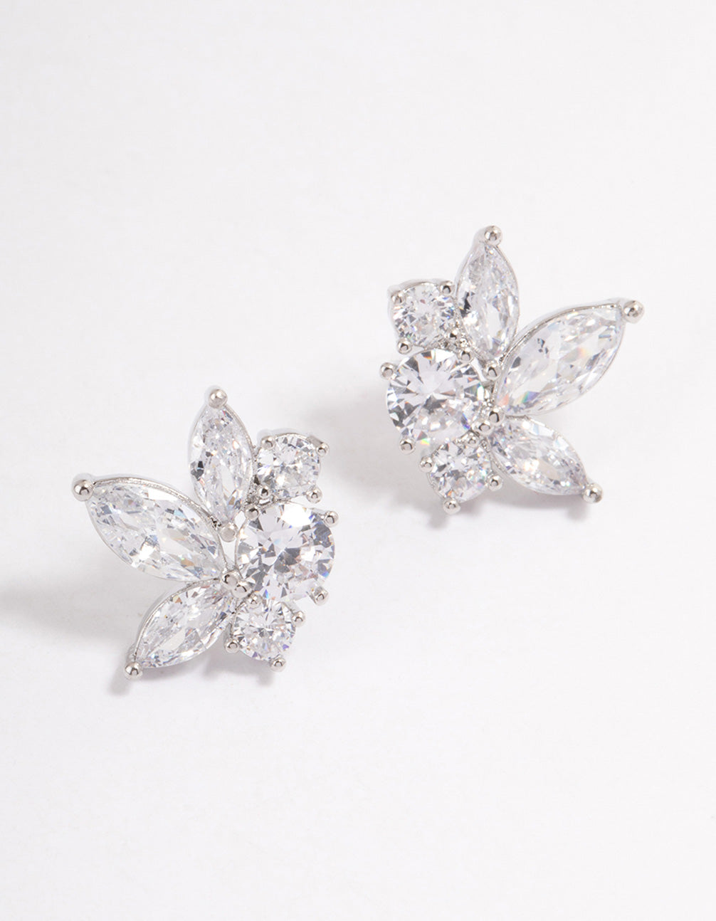 • Style these silver-toned, lotus stud earrings with a set of simple huggie earrings for a curated look.