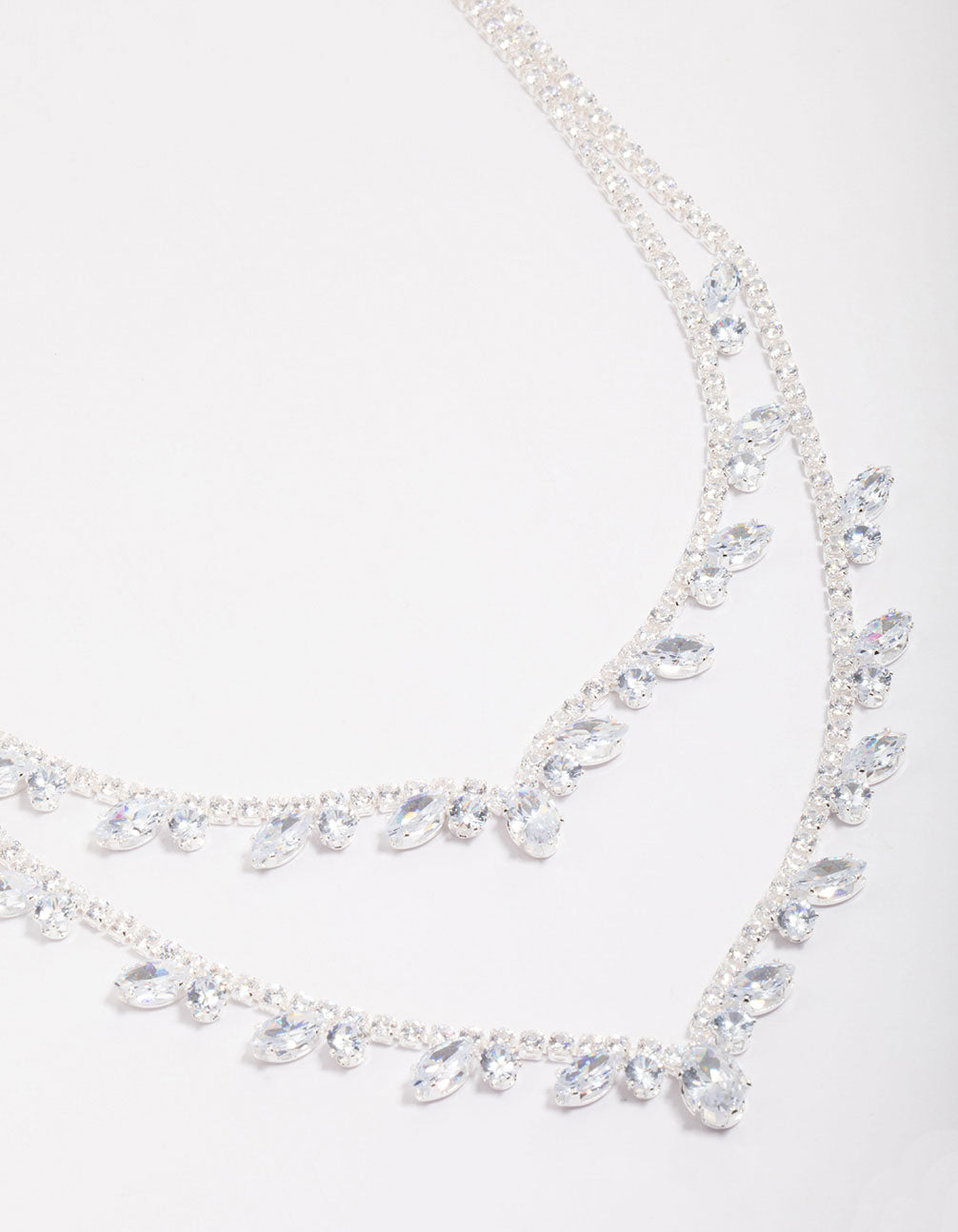 Silver Cubic Zirconia Double Layer Pear Stone Necklace Silver Cubic Zirconia Double Layer Pear Stone Necklace Silver Cubic Zirconia Double Layer Pear Stone Necklace