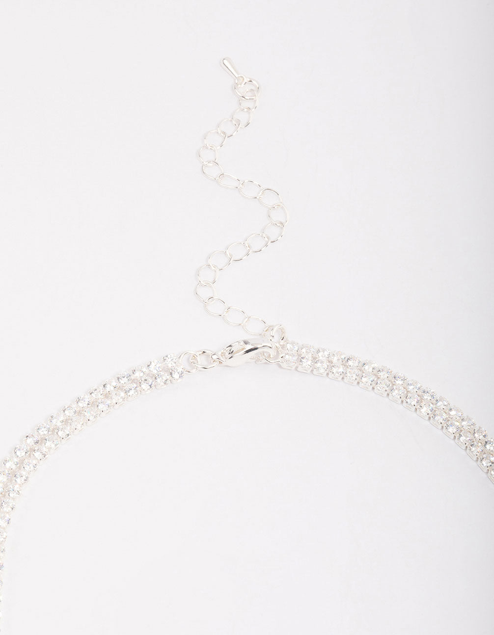 • Style this Silver Cubic Zirconia Double Layer Pear Stone Necklace with a simple choker necklace for a layered look.