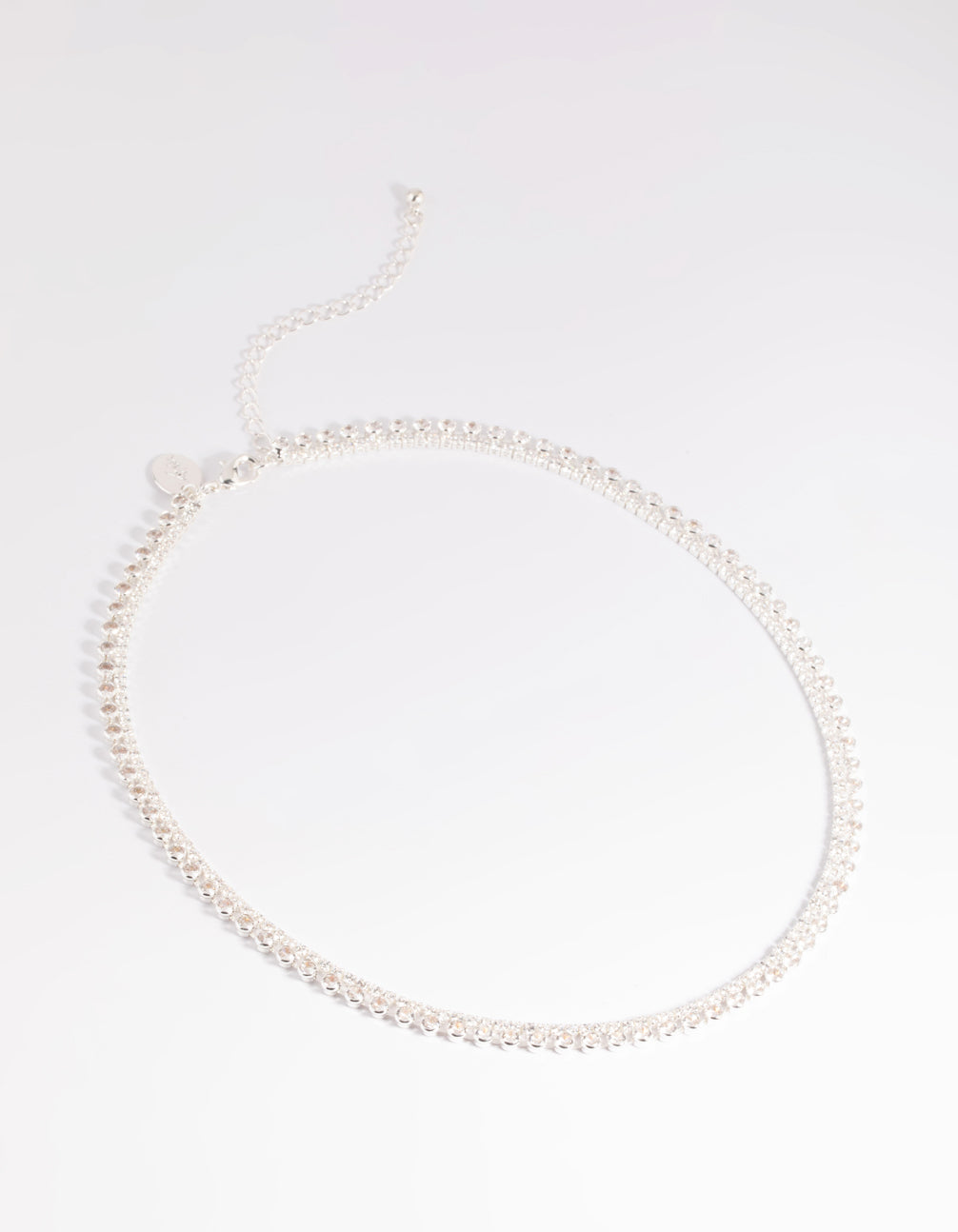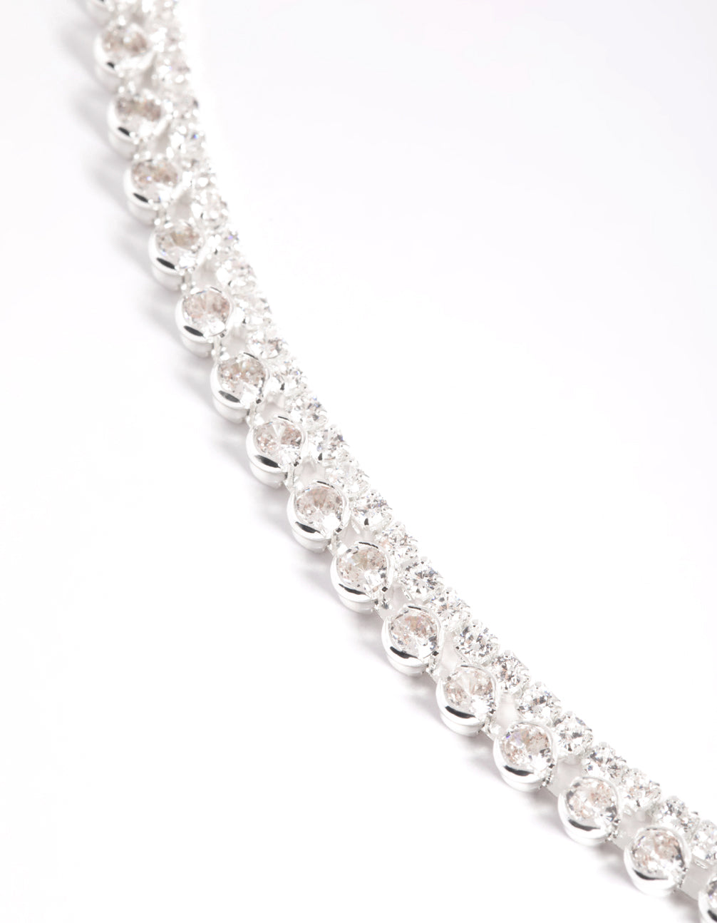 Decorate your decolletage with our Silver Double Row Necklace. Made with cubic zirconian crystals, this piece is designed to resemble genuine diamonds.