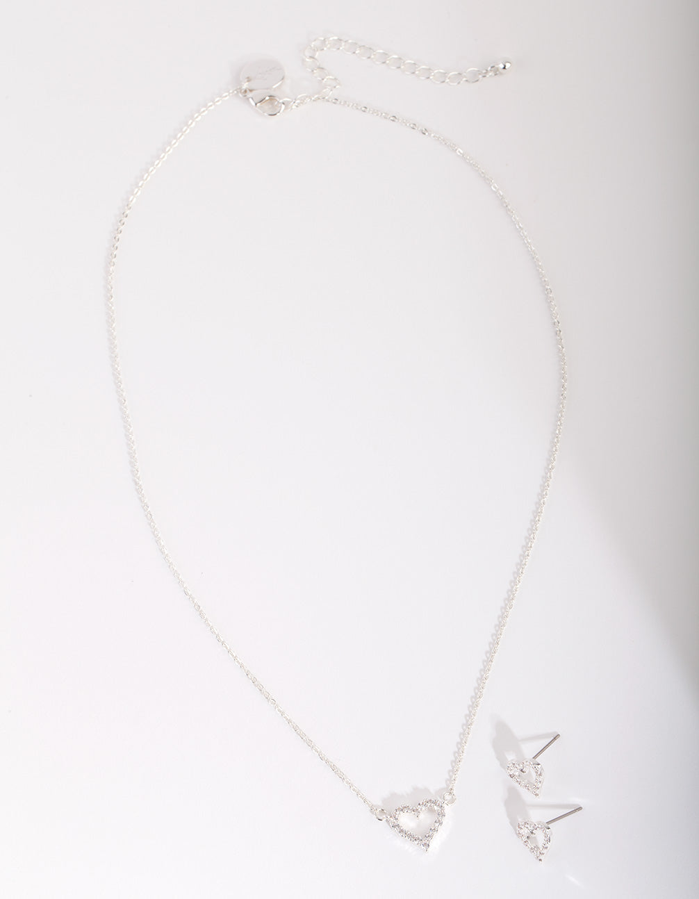 Silver Cubic Zirconia Heart Necklace & Earrings Set