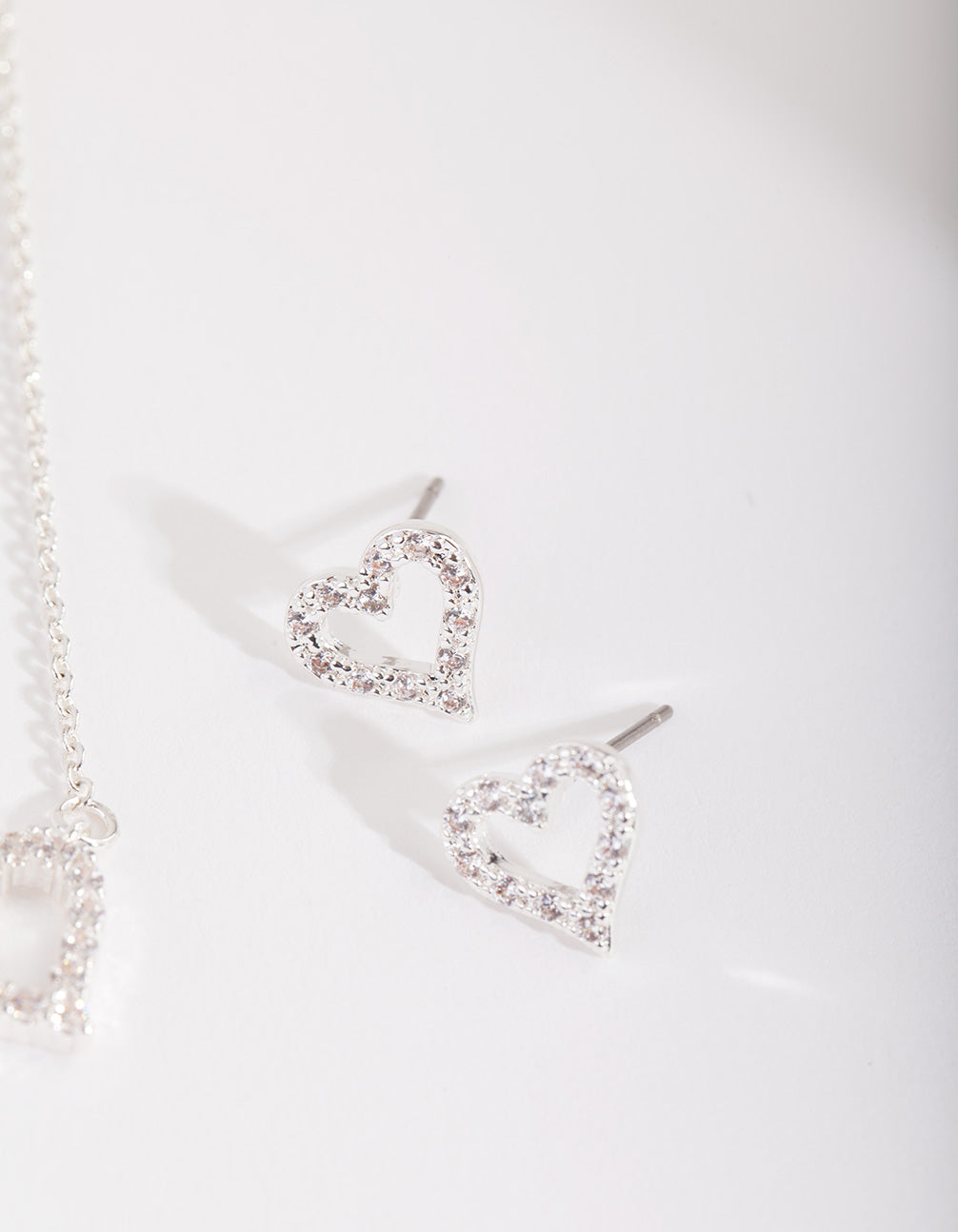 Diamonds are a girls best friend! Made with diamond simulants - this cubic zirconia silver-tone necklace and stud earring set features an embellished open heart pendant design.