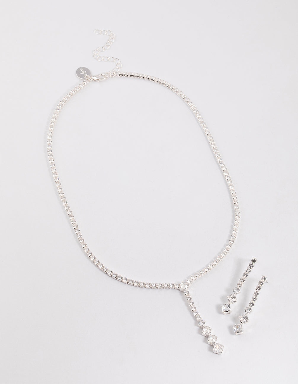 Silver Cubic Zirconia Silver Y-Neck Jewellery Set