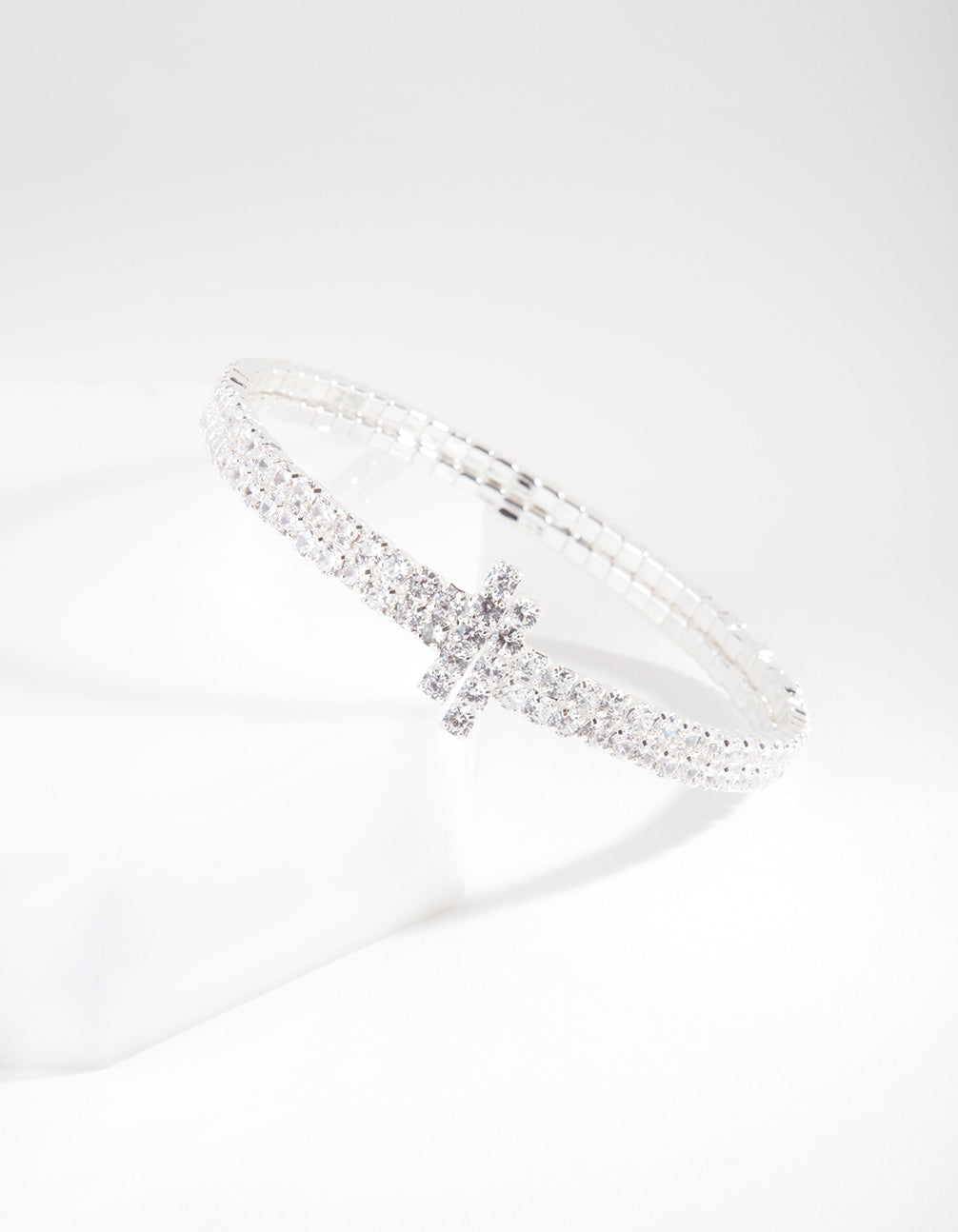 Silver Cubic Zirconia Row T Cuff Bracelet