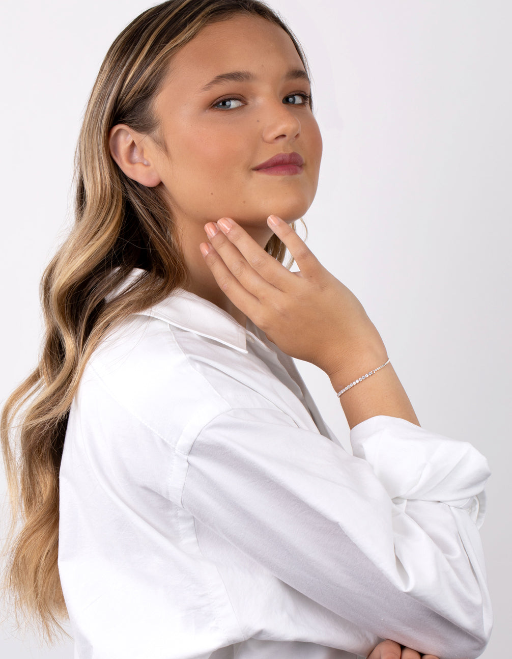 Cubic zirconia stones make the perfect alternative to real diamonds. Add some sparkle to your look with this classic bracelet that will never go out of style.