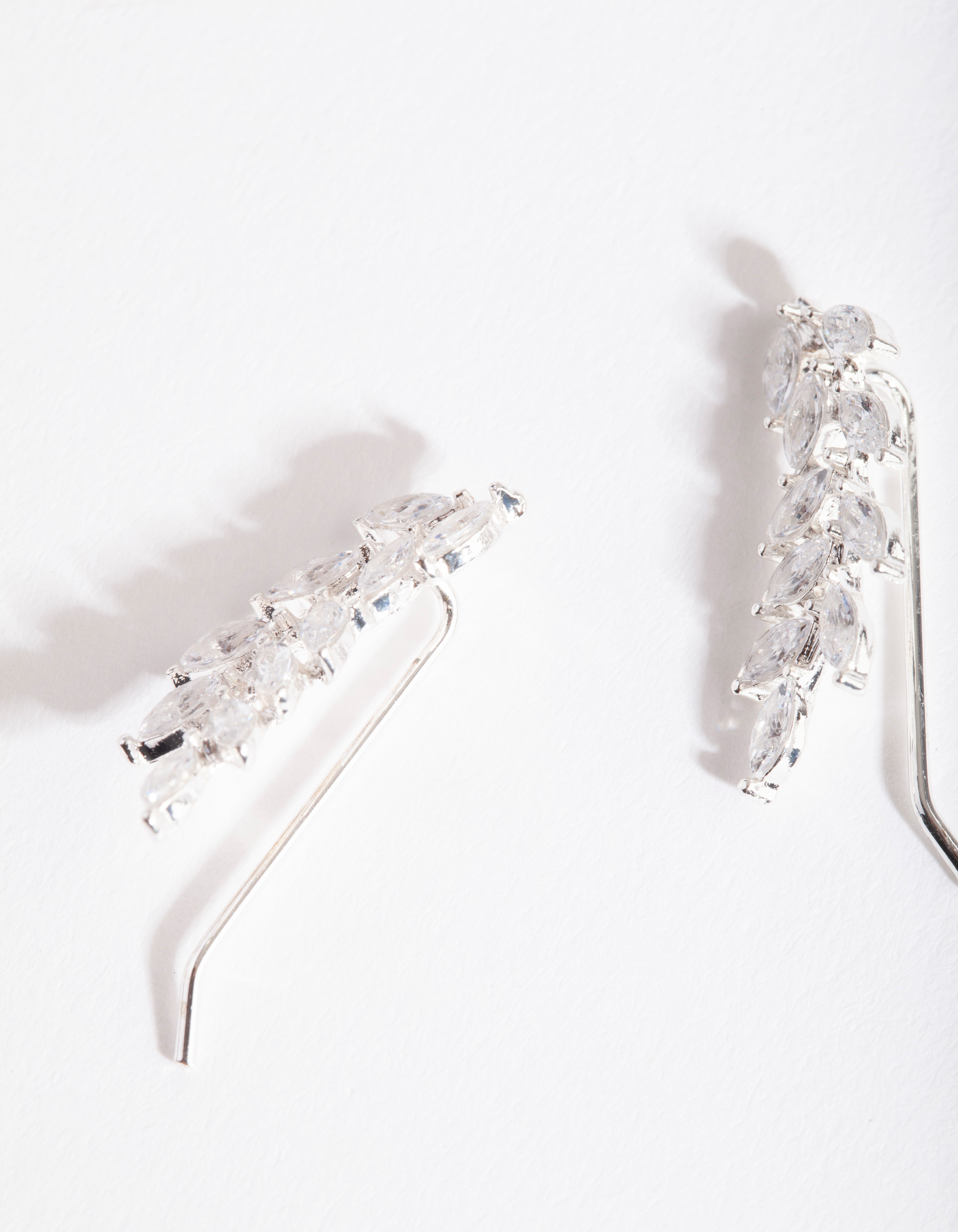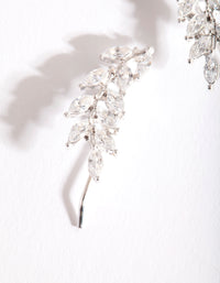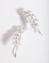 Silver Cubic Zirconia Elegant Leaf Drop Earrings