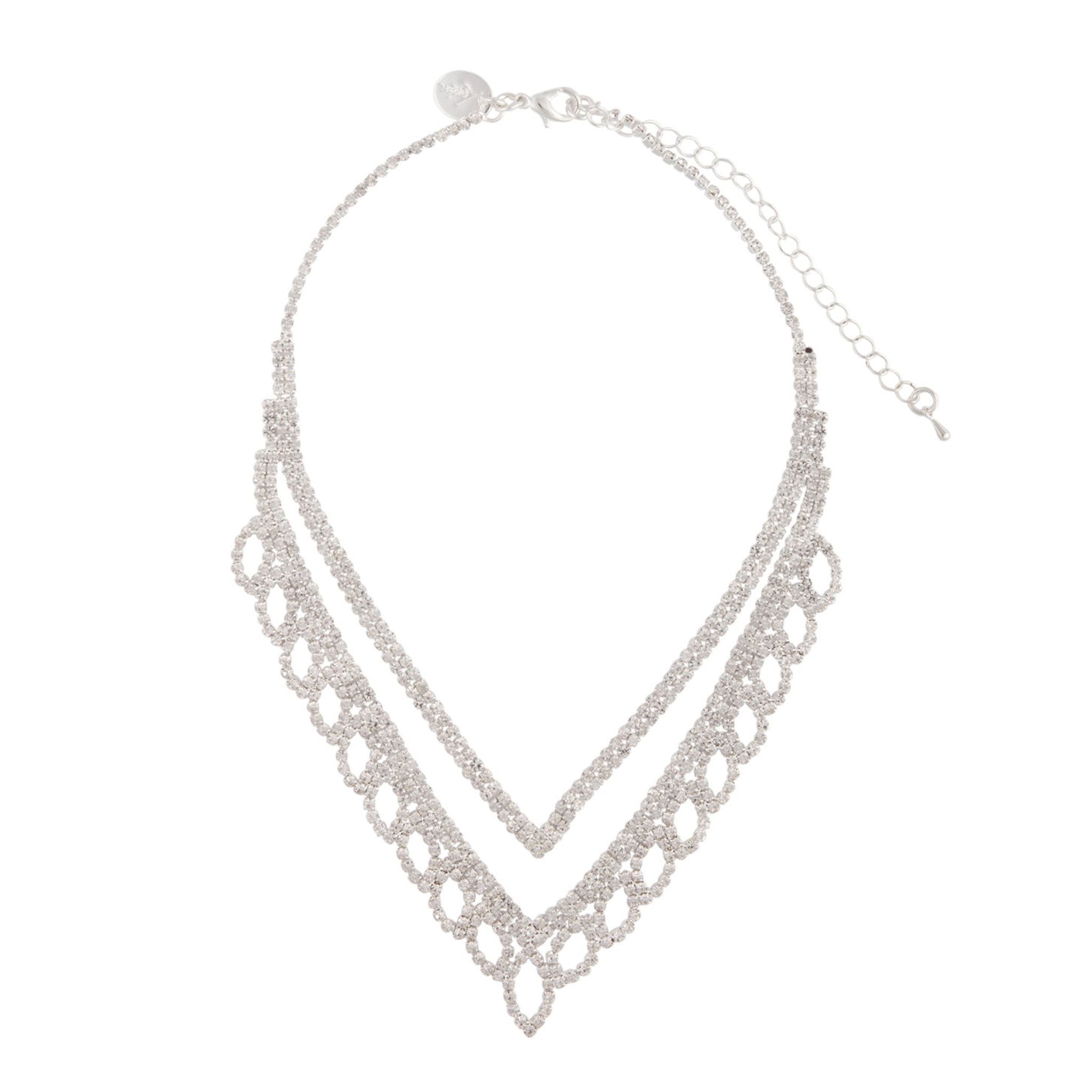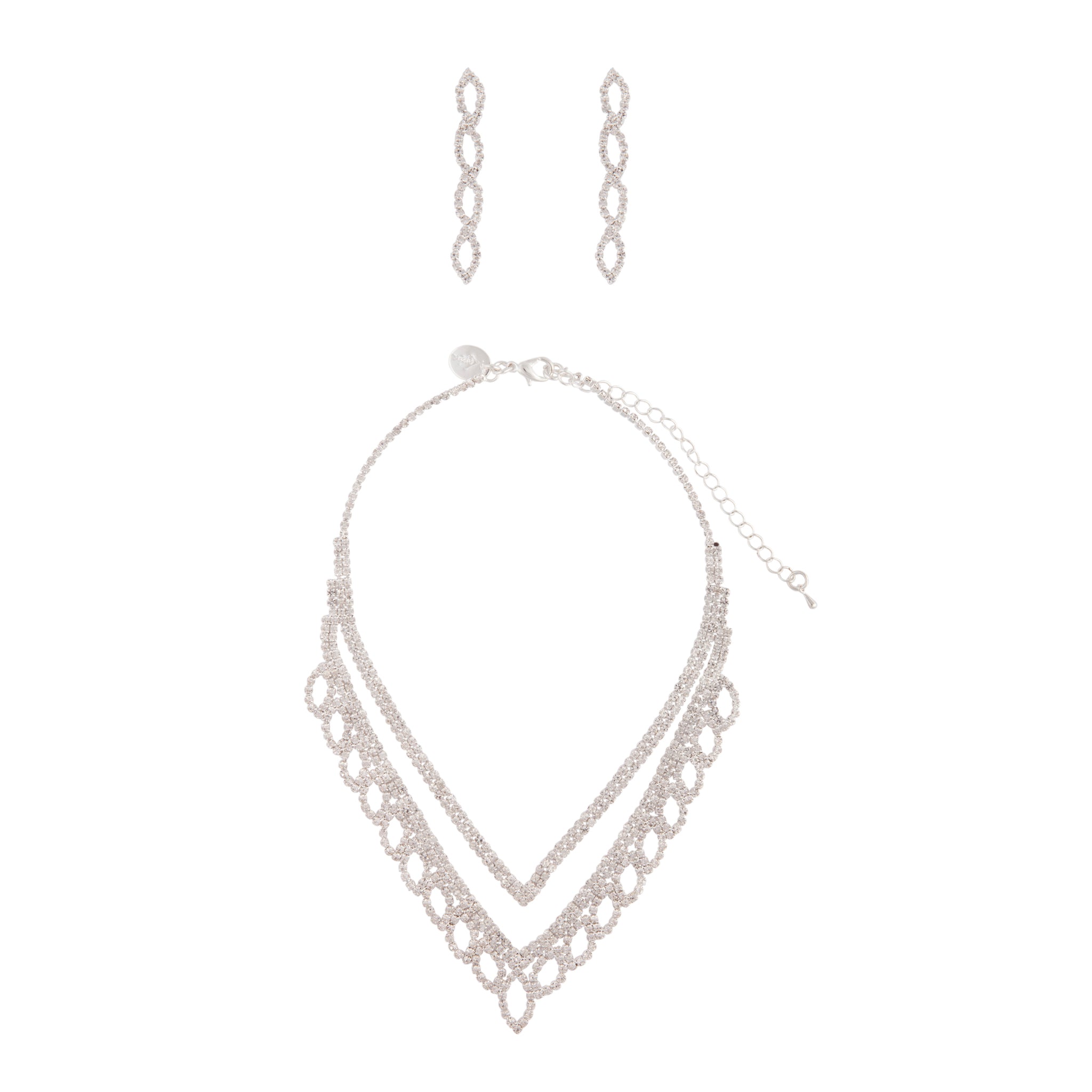 Silver Diamante Leaf Earrings Necklace Set