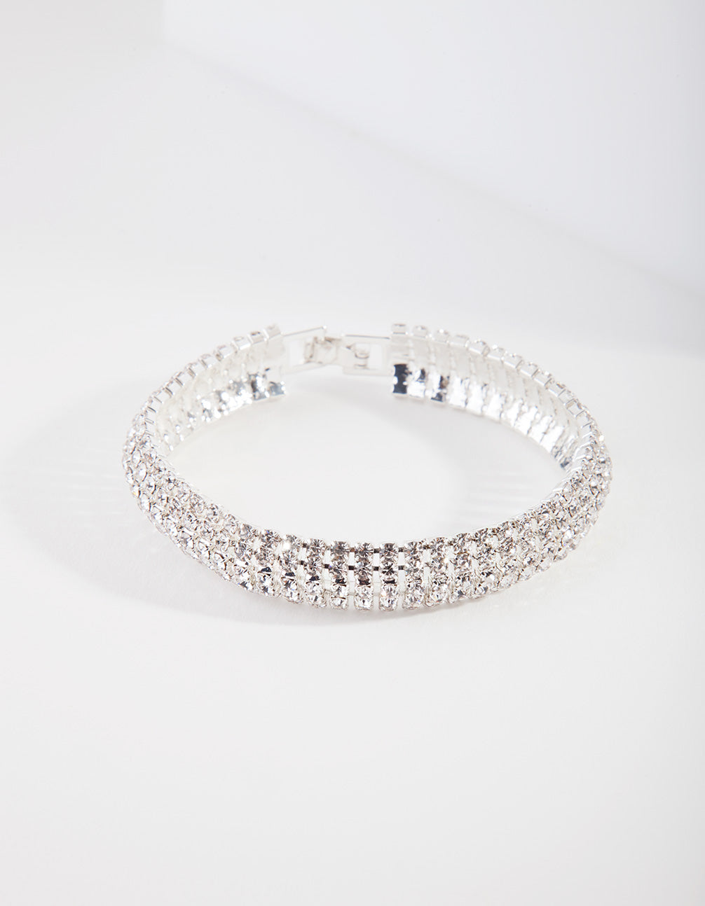 Add some sparkle to your outfit with this silver-toned four row cupchain bracelet.