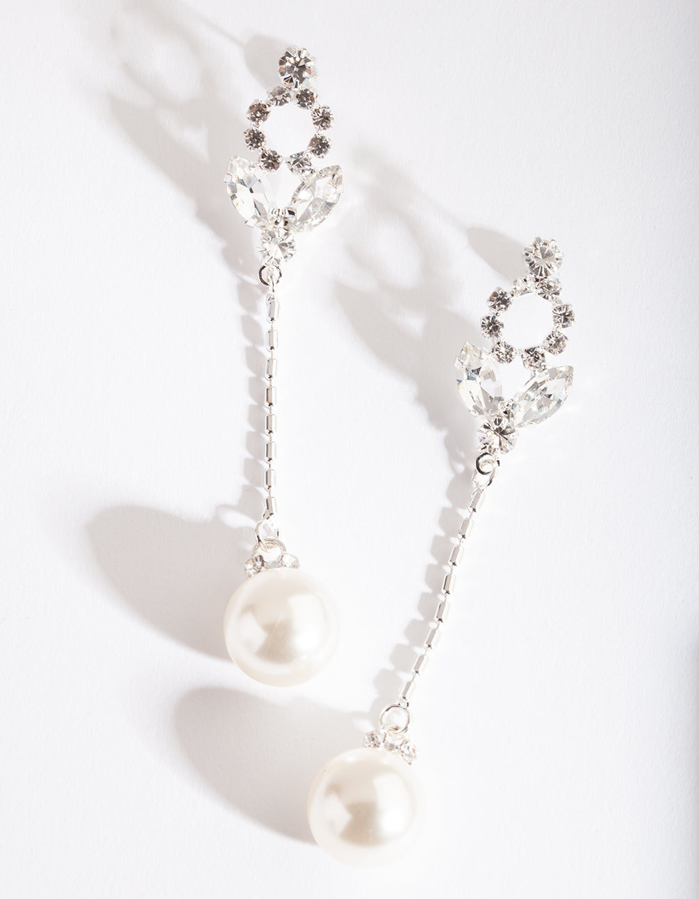 Statement earrings have become the easiest way to switch up any wardrobe. Conversation-starting styles mean that a new pair of earrings replaces the need for a new dress. These earrings boast a faux pearl and gem drop design on a silver-toned setting.