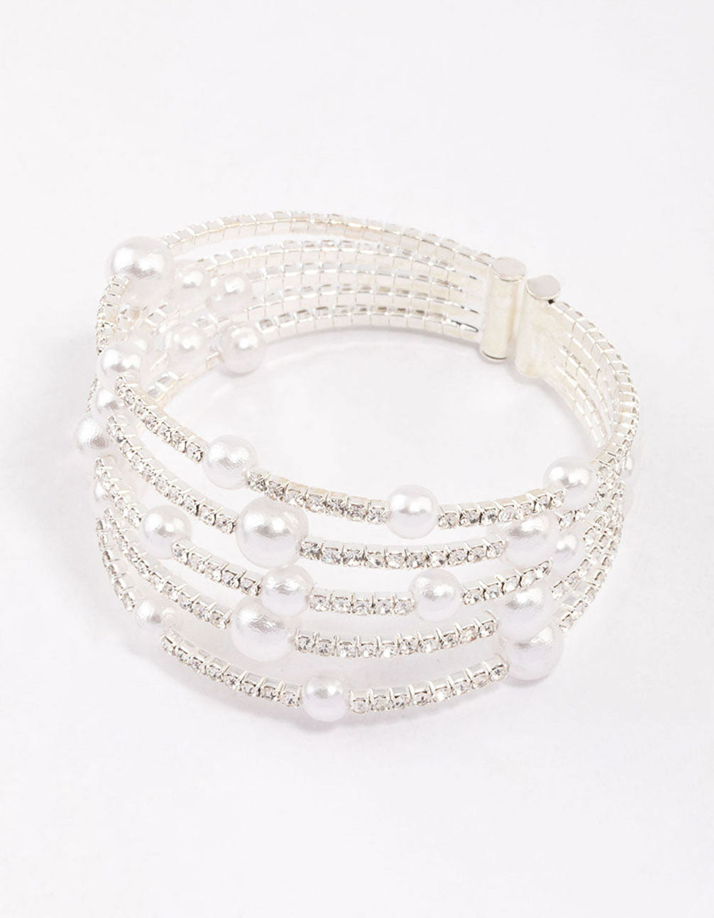 - Style this Silver Diamante & Pearl Decorative Wrist Cuff with a set of cupchain diamante earrings for a stand-out finish.
